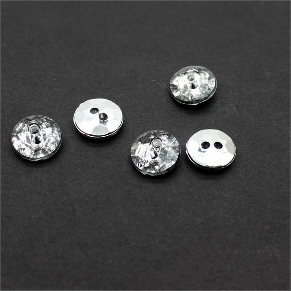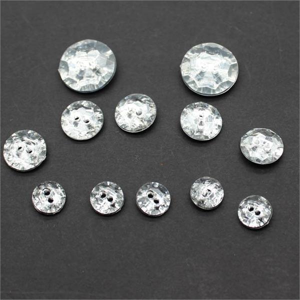 9mm-25mm dvoudírkové akrylové průhledné knoflíky s třpytivými diamantovými fasetami, balení 900 ks (9 smíšených velikostí)