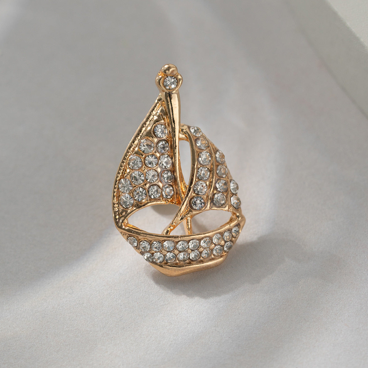 Brož s designem plachetnice zdobené diamanty - módní, jednoduchá a vysoce kvalitní spona na pánské sako, balení 4 ks