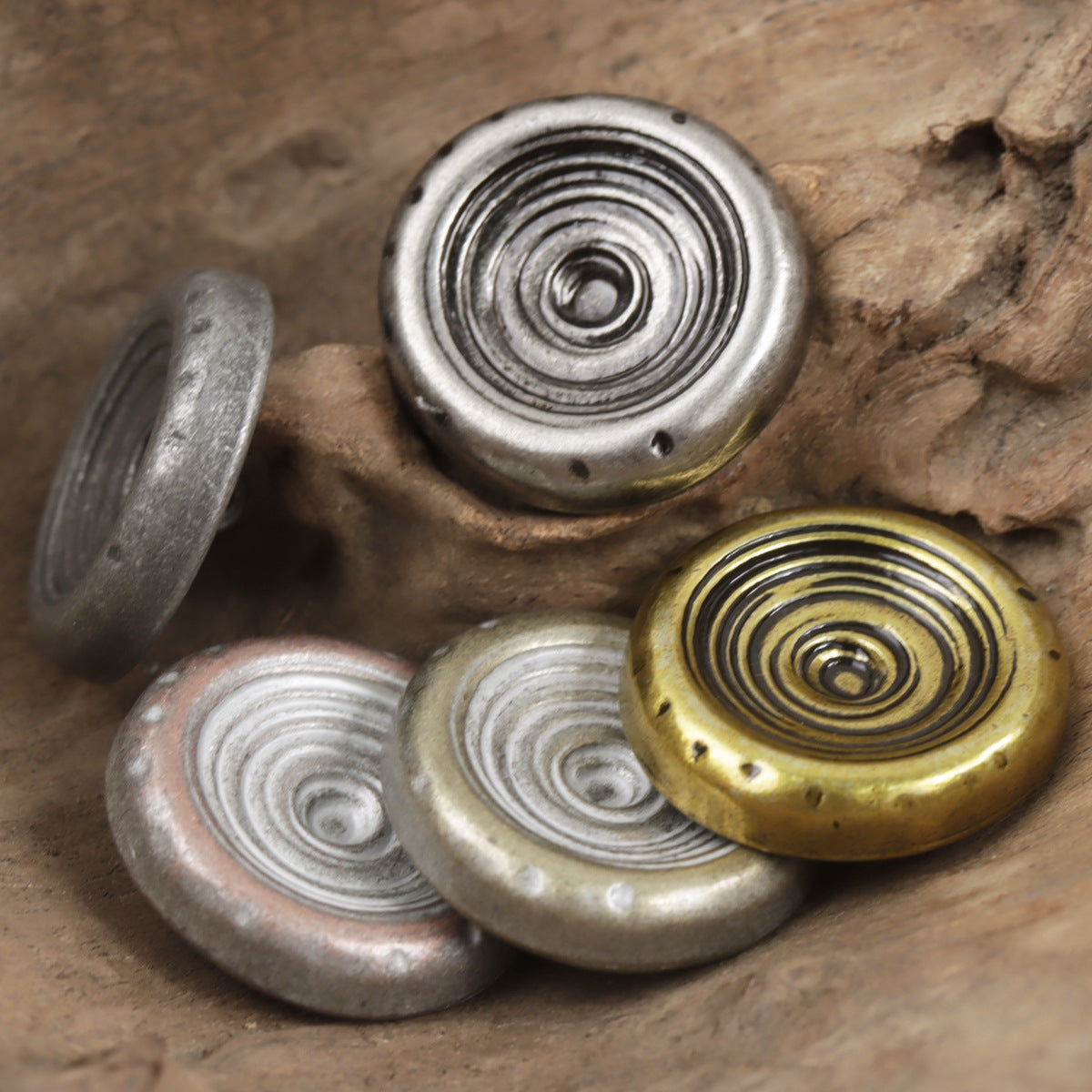 Bohaté odstíny a jedinečné povrchy těchto knoflíků jim dodávají starožitný vzhled, který je zároveň okouzlující a sofistikovaný. Vyrobeny z vysoce kvalitního kovu, jsou odolné a dlouhotrvající, což zajišťuje, že vaše oděvy zůstanou stylové i v dalších sezónách.