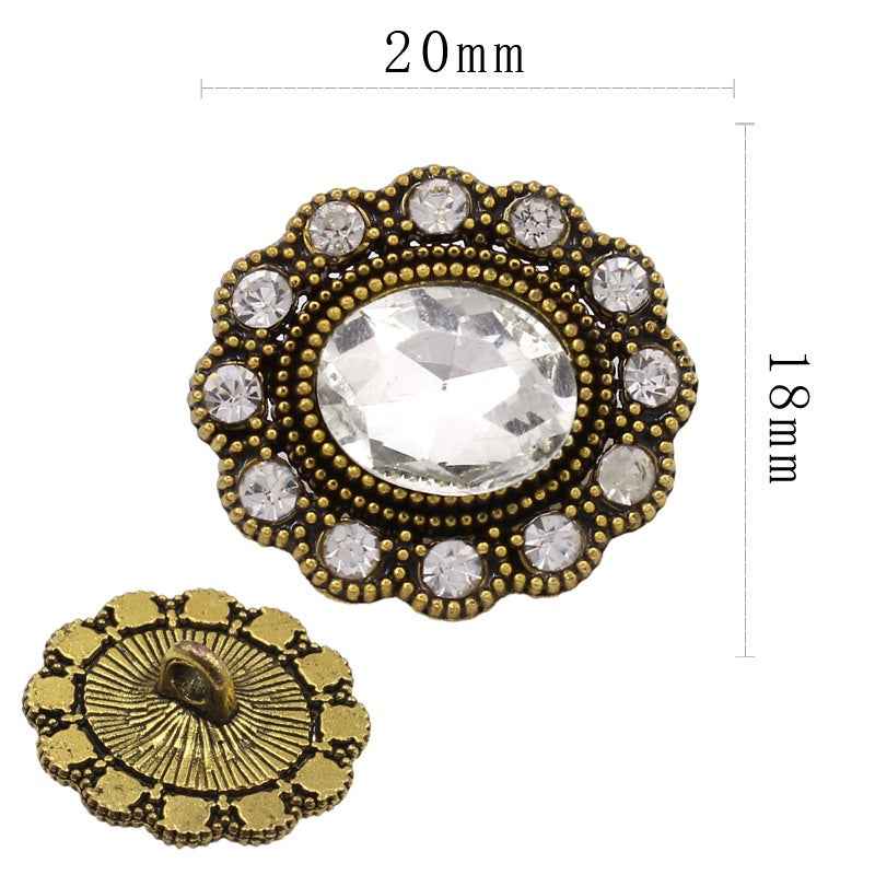 Starožitné zlaté květinové a oválné knoflíky s očkem a kamínky – elegantní základna ze slitiny s krystalovými akcenty 20KS