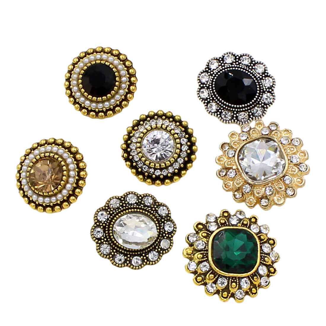 Přidejte svým výtvorům vintage kouzlo s těmito vynikajícími starožitnými zlatými knoflíky s očkem a kamínky, které mají jemné květinové a oválné vzory vyrobené z prémiové slitiny. Každý knoflík obsahuje:
