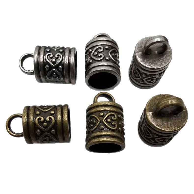 Dokončete své projekty se šňůrkami a provazy s těmito elegantními antickými kovovými válcovými zakončovacími krytkami 16x10MM. Tyto vintage zakončovací prvky na šňůry mají klasický válcový design s rozšířeným zvonovým zakončením, ideální pro upevnění šňůr na mikinách, taškách, závěsech a DIY projektech a zároveň přidávají nádech nadčasové sofistikovanosti.