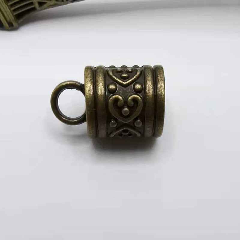 Antické kovové válečkové koncovky na zvonek pro šňůrky 30 kusů