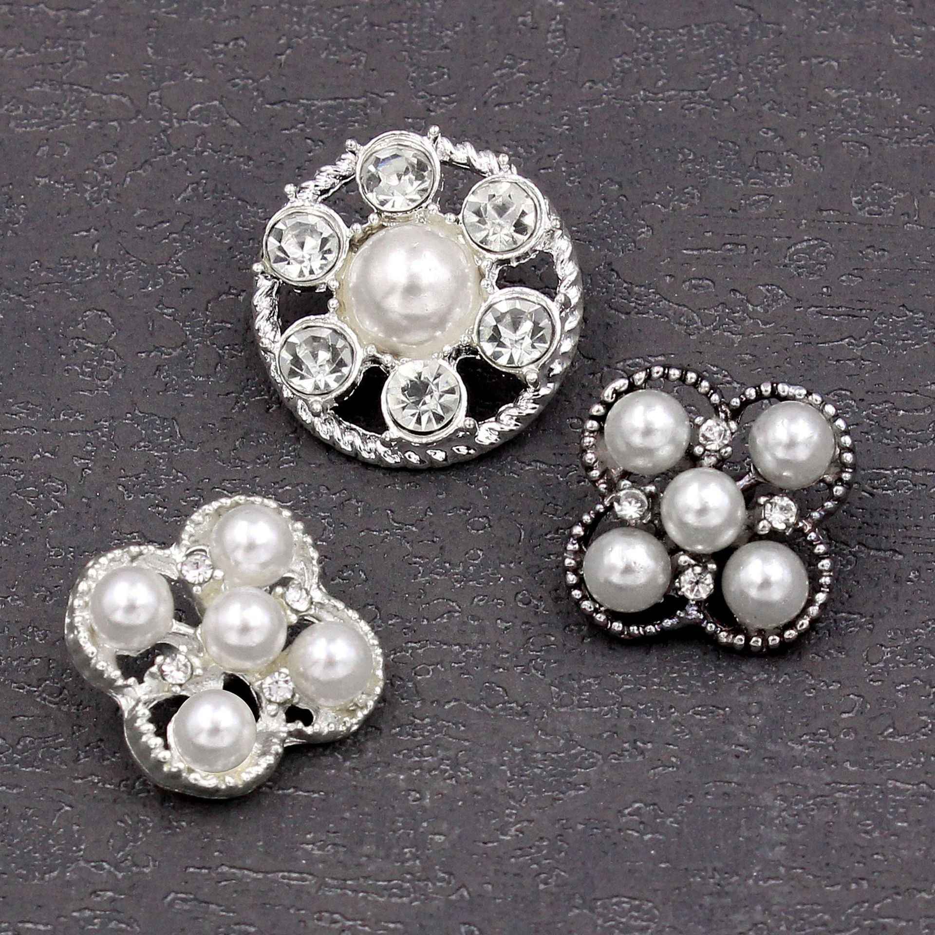 Knoflíky z barokní slitiny s ručně vyráběnými perlami a kamínky – luxusní couture detaily 20ks