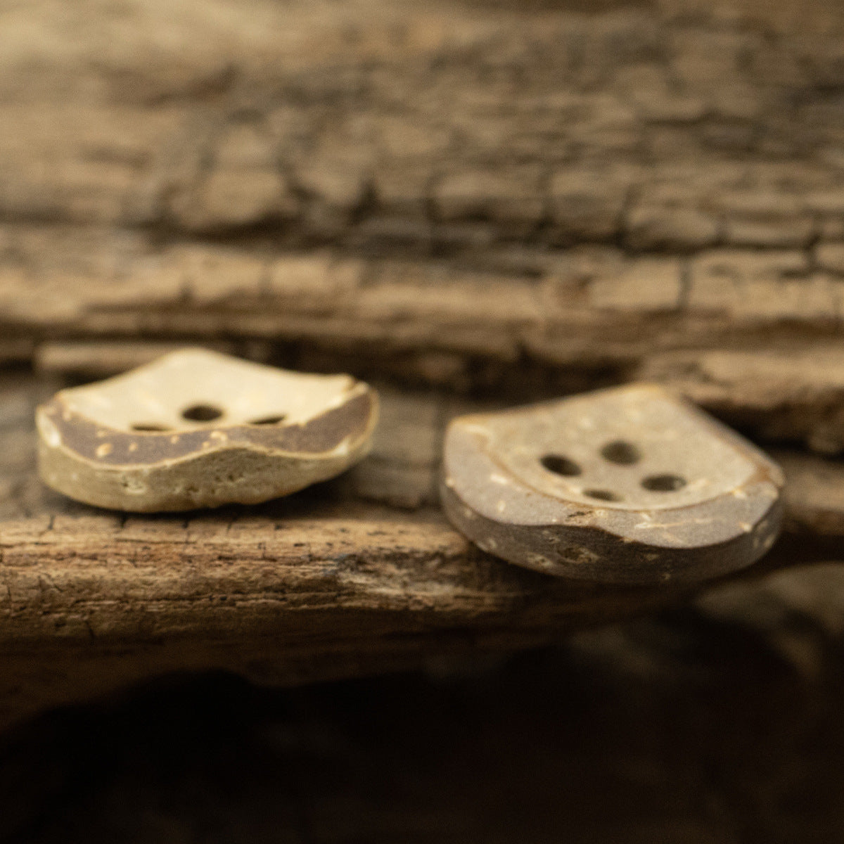 Béžové a khaki dekorativní knoflíky ve tvaru misky z kokosové skořápky, balení 30 kusů