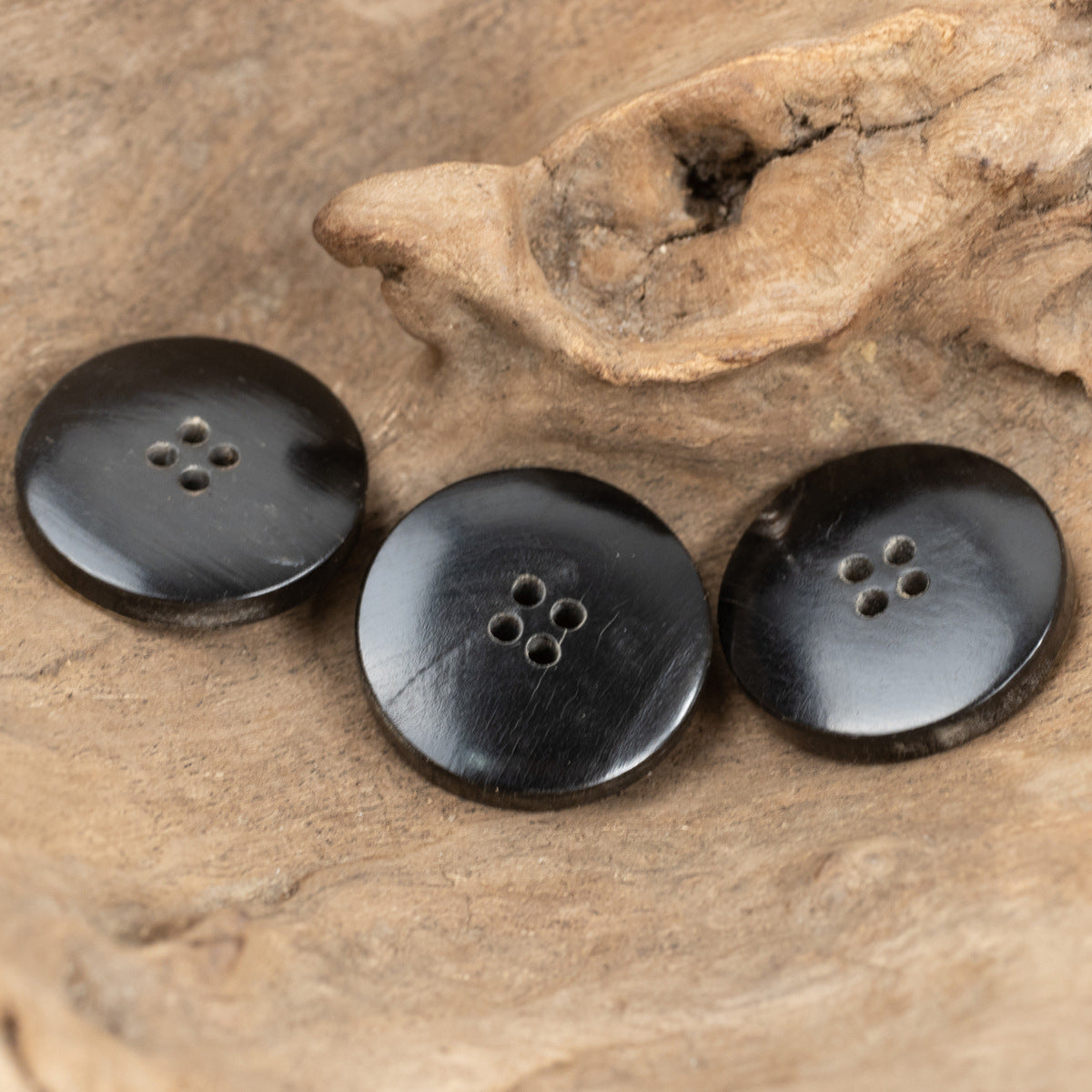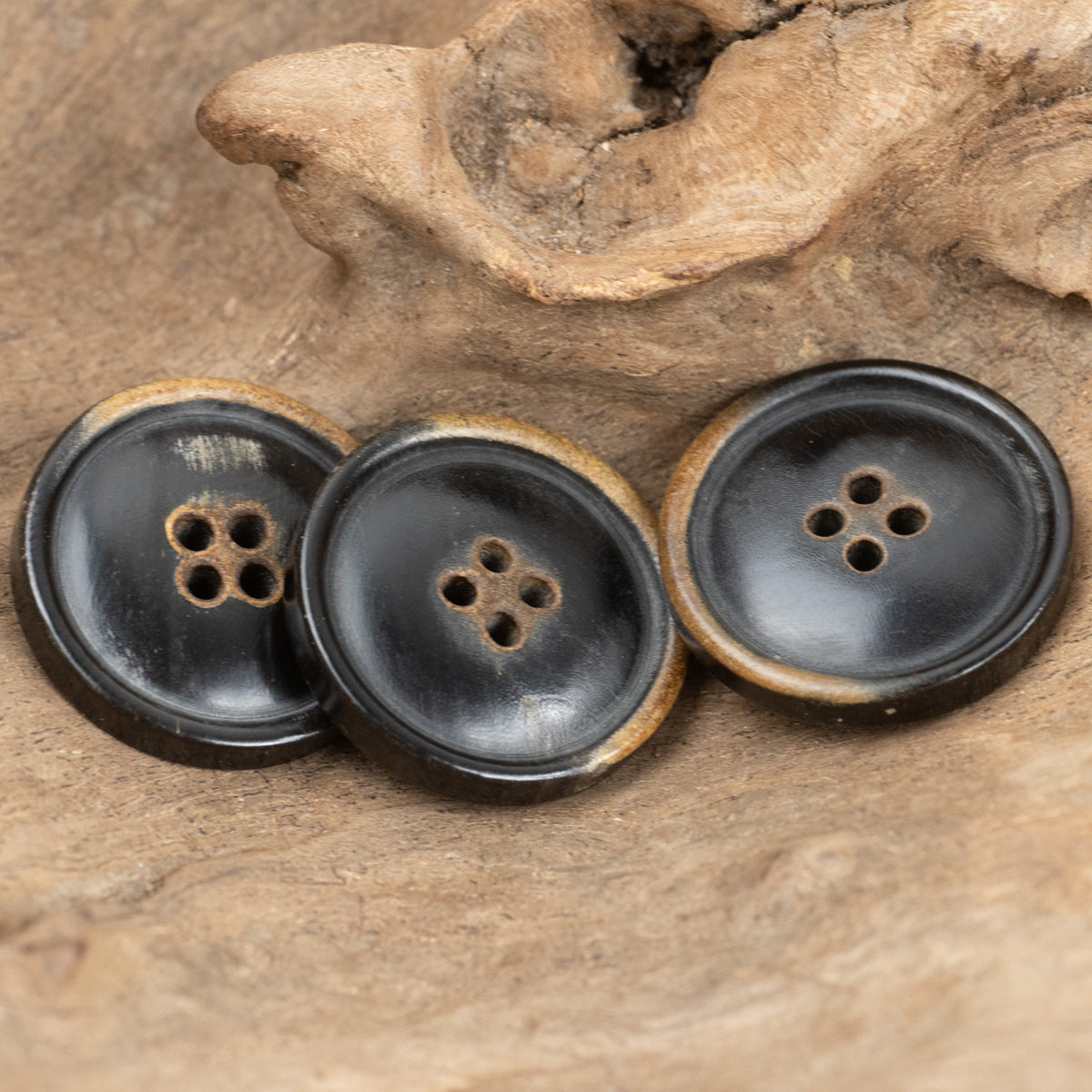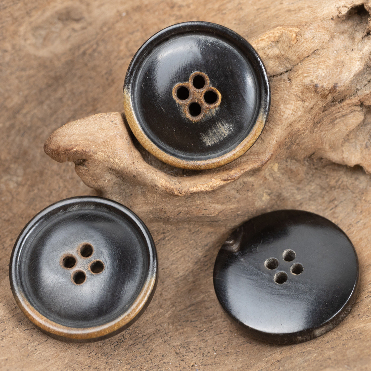 Vyrobené z pravého přírodního rohu, tyto knoflíky nejsou jen odolné, ale mají také výraznou texturu a krásu. Černý spálený povrch dodává nádech vintage stylu, díky čemuž jsou ideální pro přidání charakteru jakémukoli kousku.