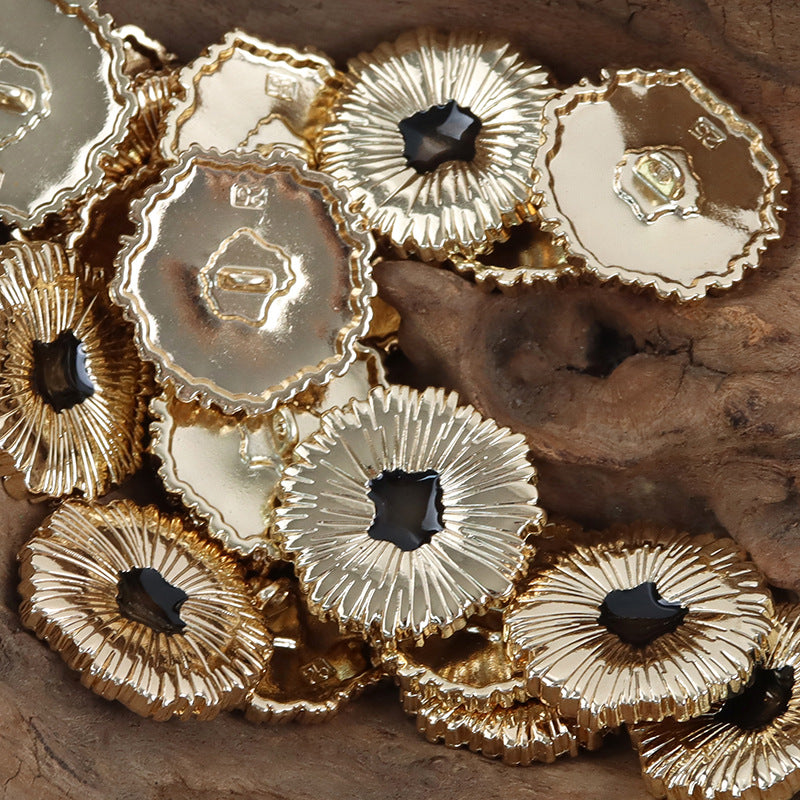 Černé olejované zlaté stříbrné kovové knoflíky ve tvaru vločky 10 kusů