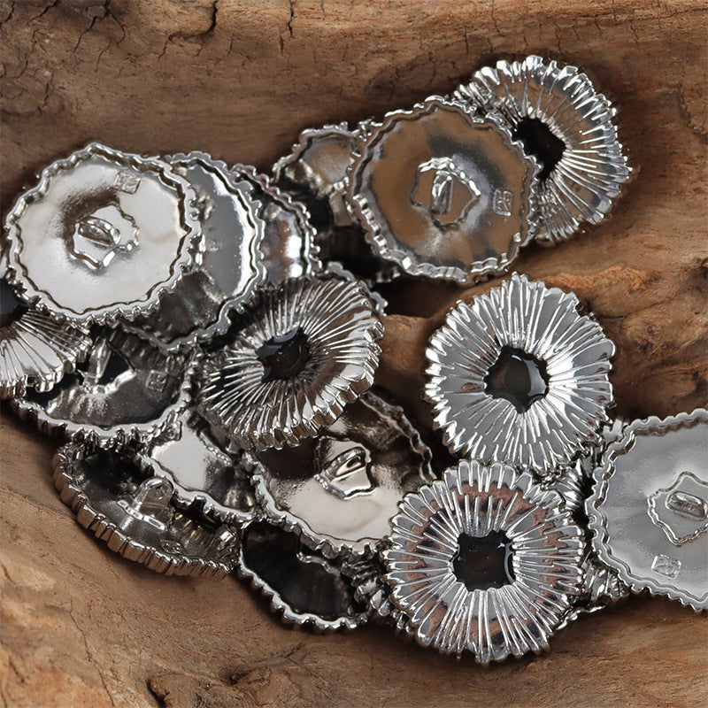 Černý olejovaný povrch dodává knoflíkům elegantní a sofistikovaný vzhled, zatímco nepravidelný design sněhové vločky je činí výraznými. Vyrobeny z vysoce kvalitního kovu, tyto knoflíky jsou odolné a dlouhotrvající.