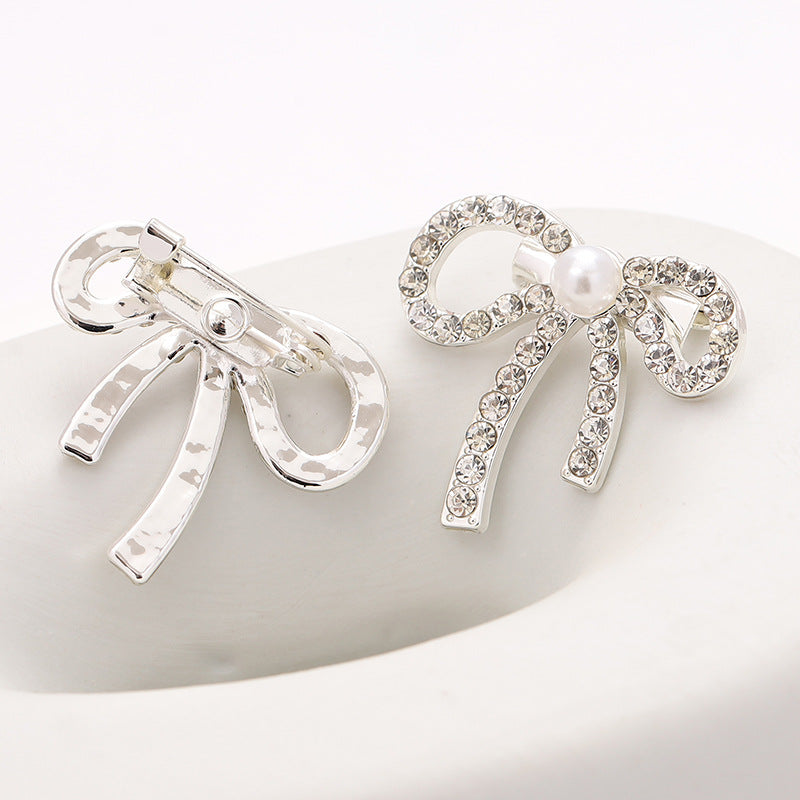 Brož s mašlí, kamínky a perlami - kovový špendlík zdůrazňující pas a dekorativní knoflík na límec košile, 6 kusů