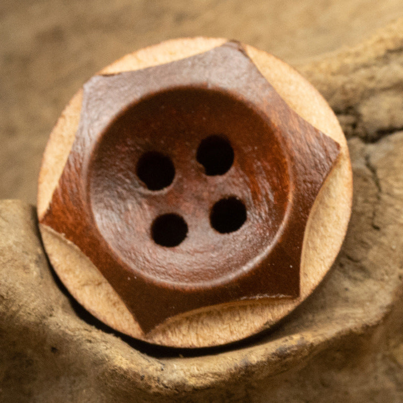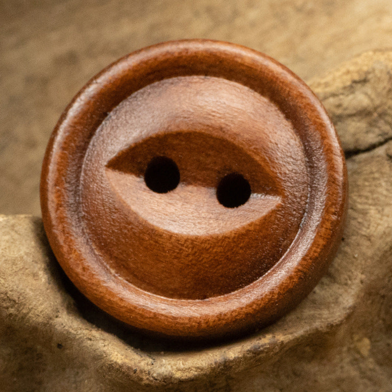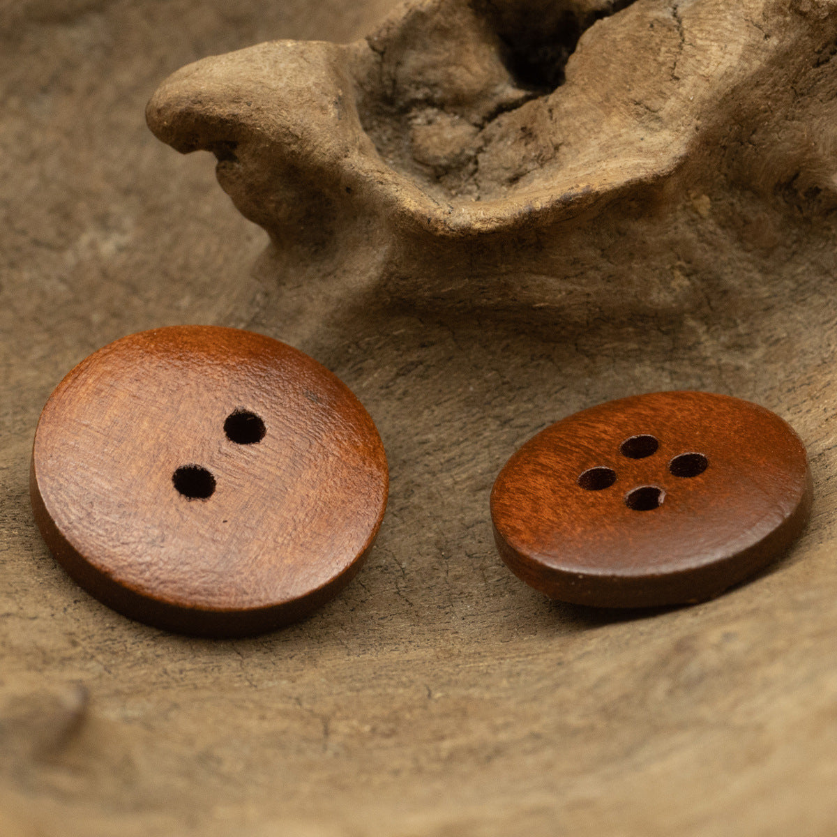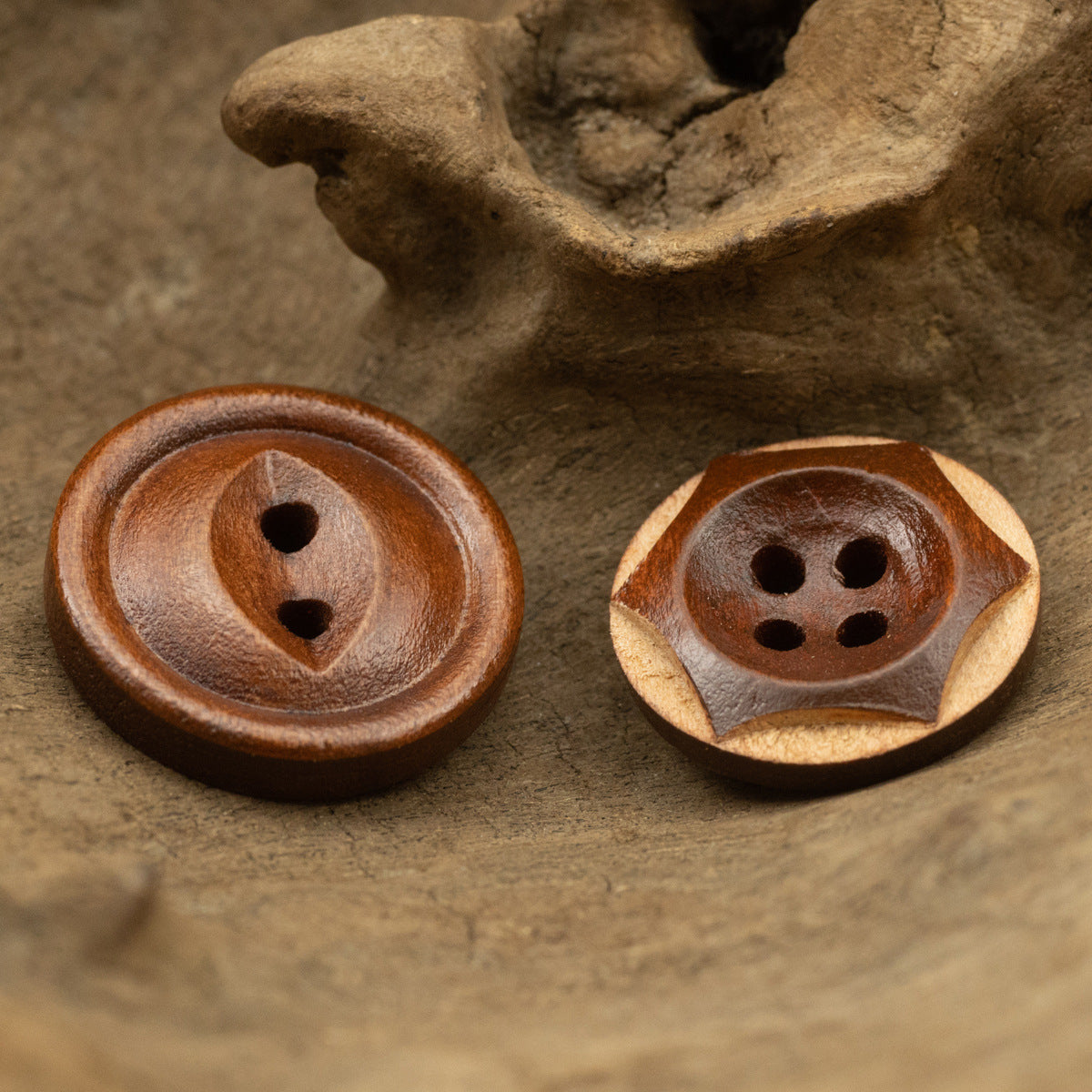Tyto knoflíky z červenohnědého dřeva s motivem kočičího oka jsou skvělou volbou pro přidání šarmu a jedinečnosti bavlněným a lněným oděvům.