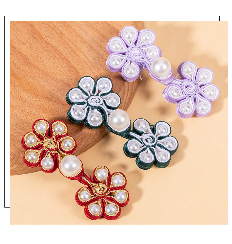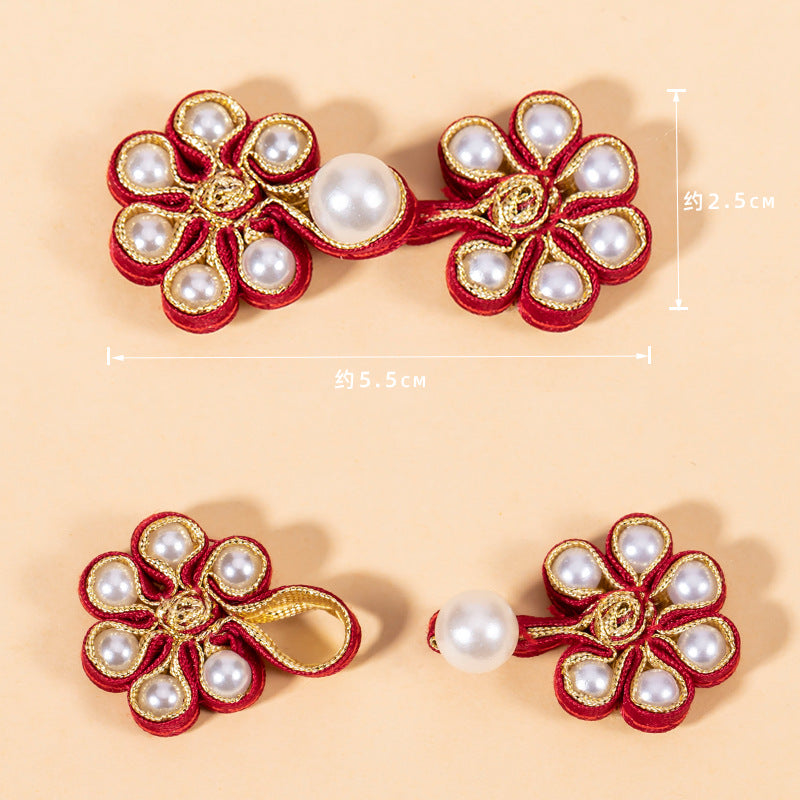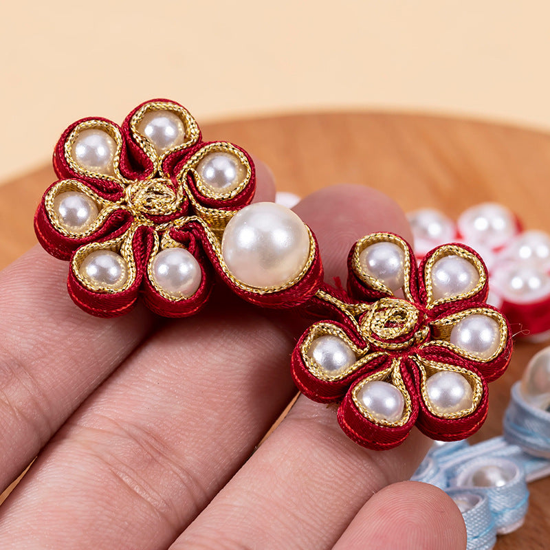 Čínské zapínání na knoflíky s perlou, květ šesti okvětních lístků, tkaný knoflík, balení 8 kusů