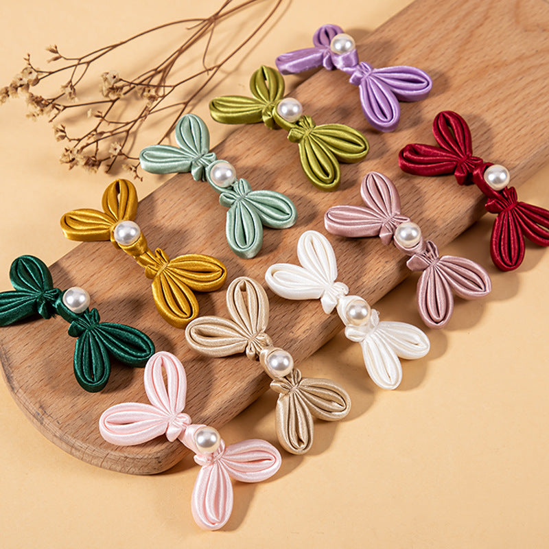 Nový čínský styl ručně vyráběné tkané zapínání ve tvaru mašle, perlový knoflík cheongsamu, čínský uzel, balení 10 barev