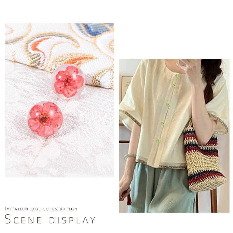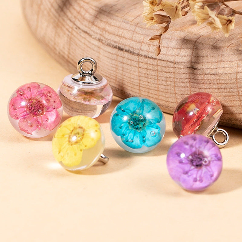 10MM čínský styl pryskyřičného knoflíku s transparentní kulatou kuličkou a sušenými květinami pro Cheongsam a Hanfu, balení 8 kusů