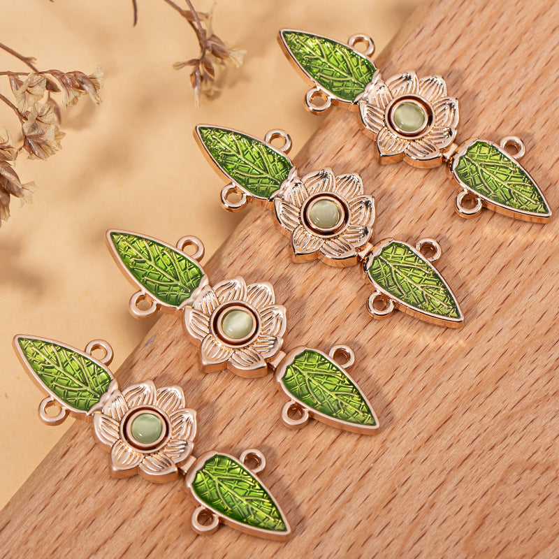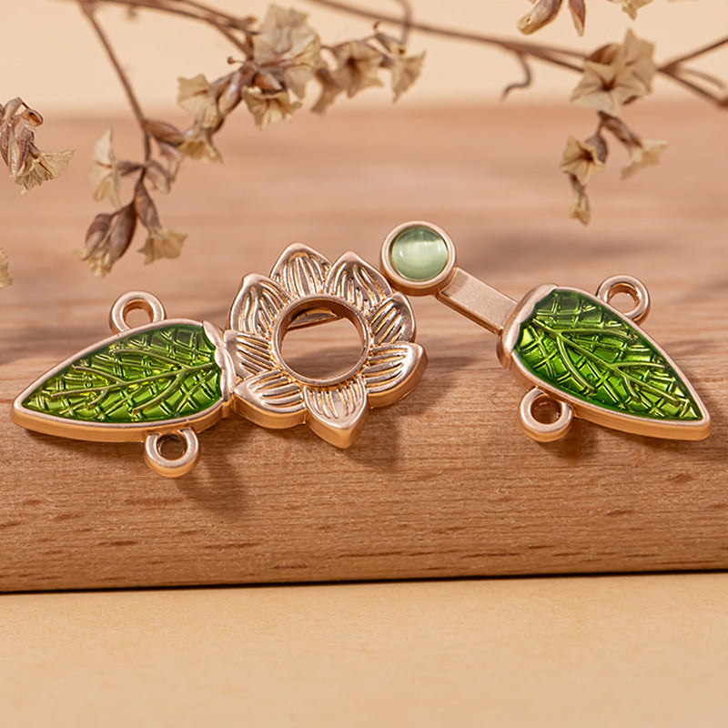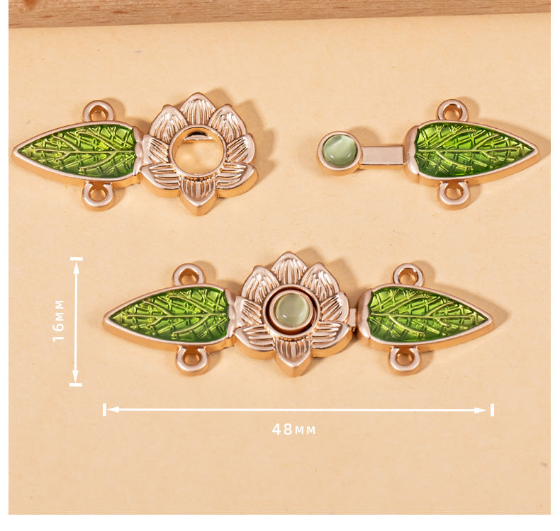 Čínský styl kočičí oko kámen zelený list Hanfu kovový zámek knoflík 10 ks