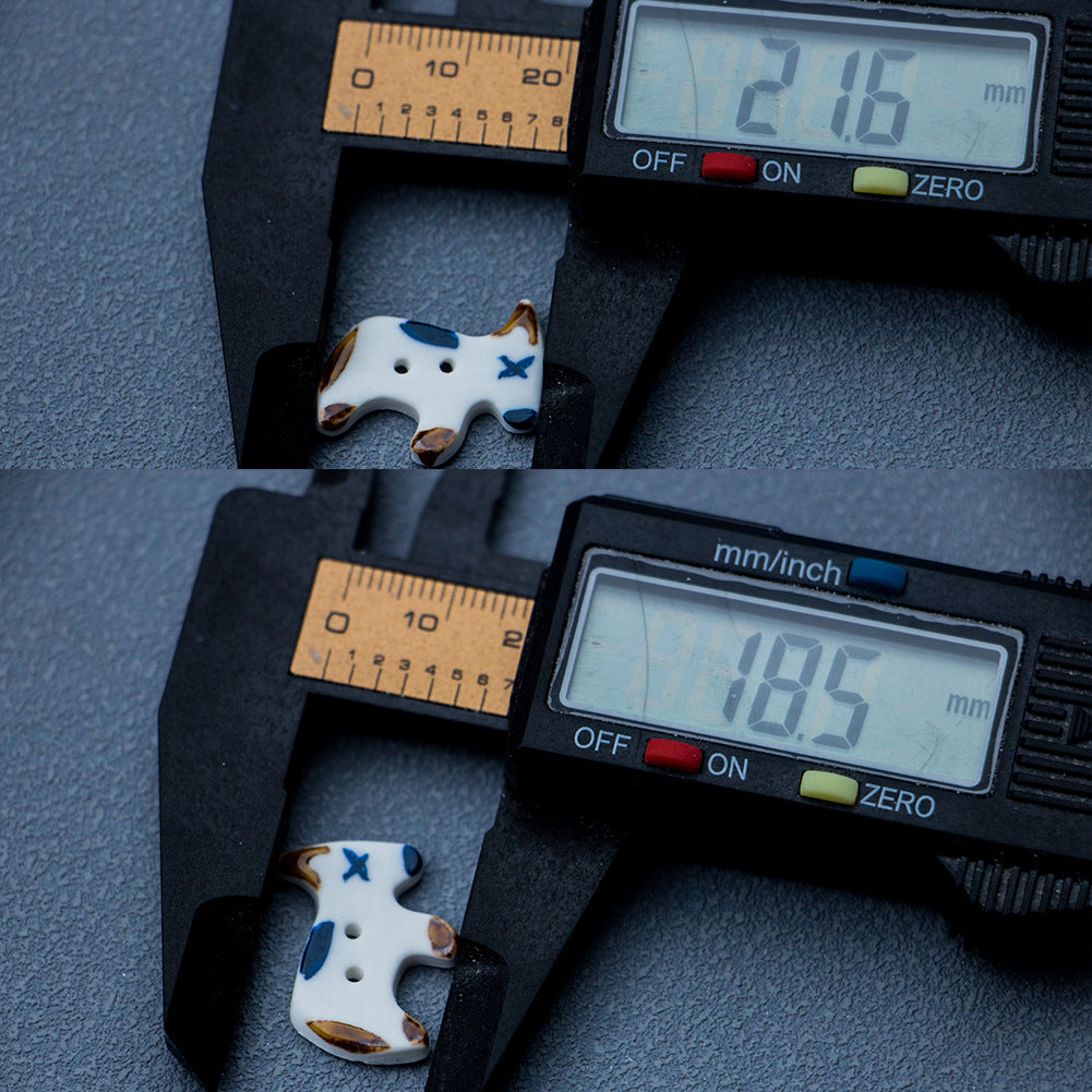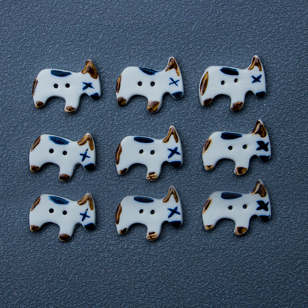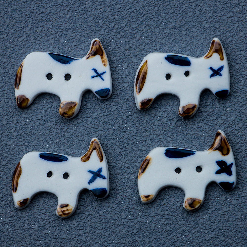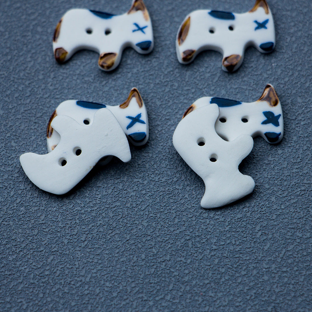 Roztomilé knoflíky z keramiky ve tvaru štěněte se 2 dírkami, ručně vyrobené, 4 kusy