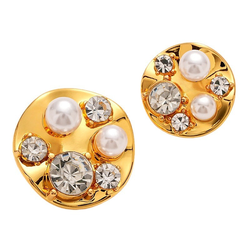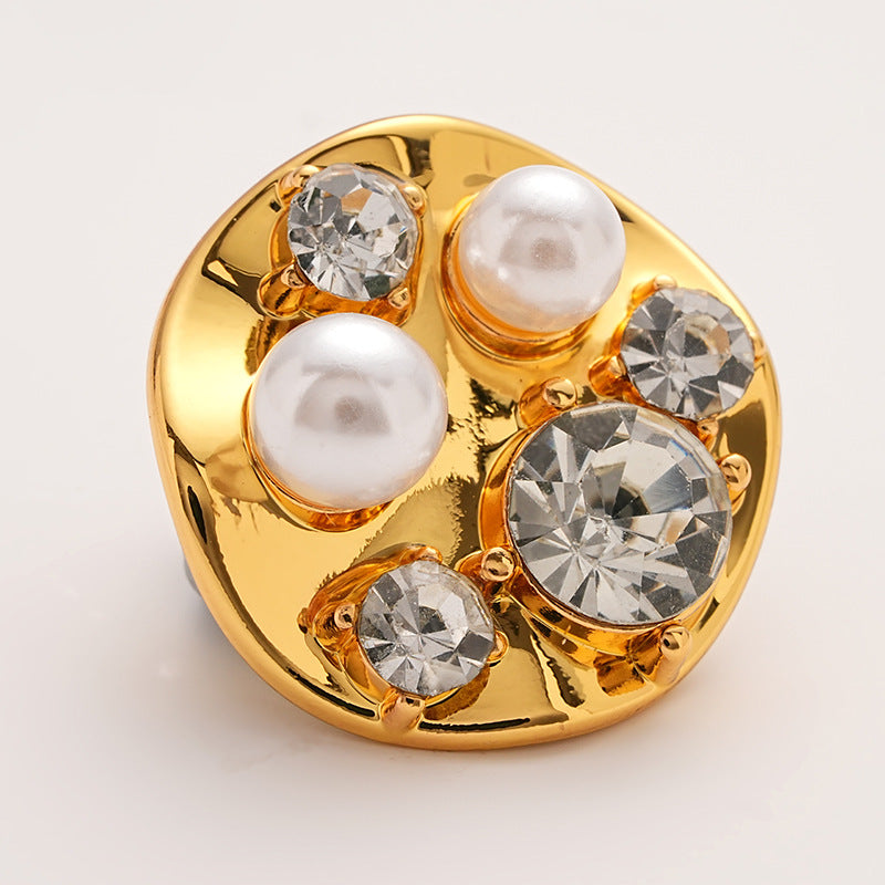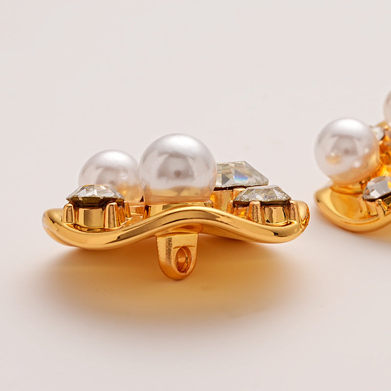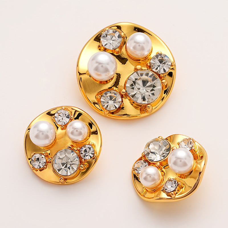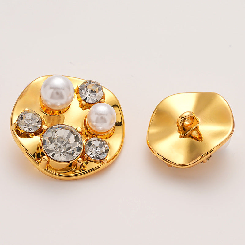 Knoflík z prémiového zlatého kovu ve tvaru růže, zdobený diamanty a perlami, s úchytem 5 ks