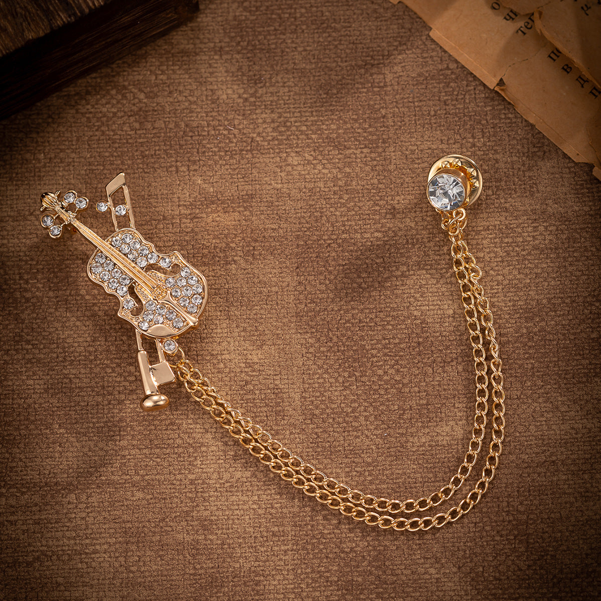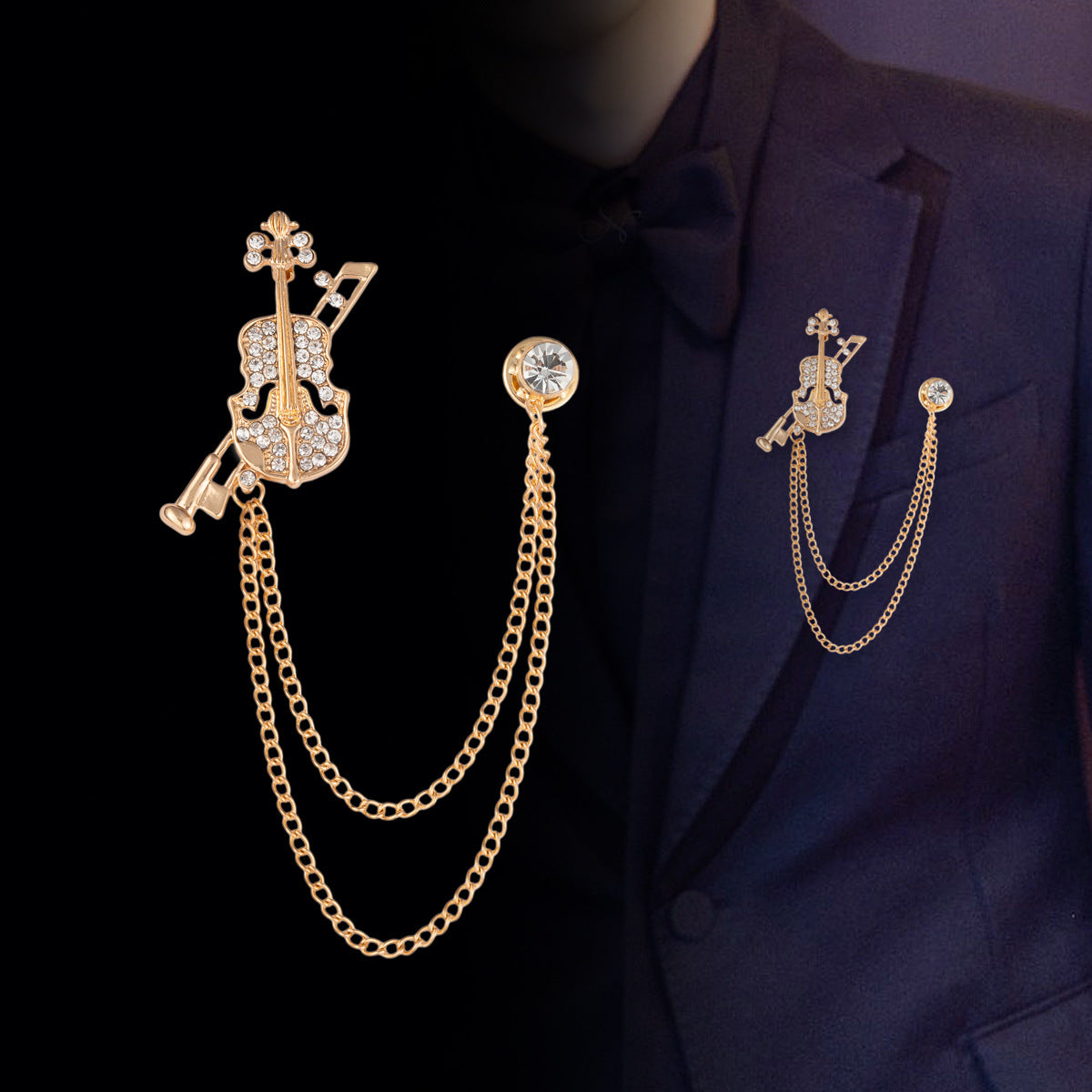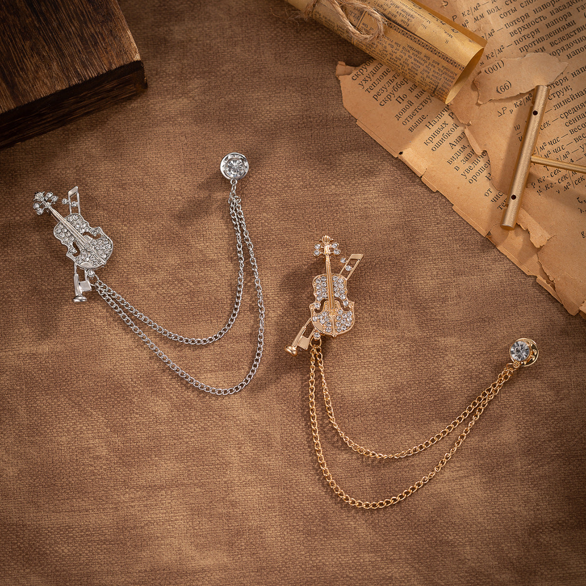 Módní brož ve tvaru houslí s diamantovou vsadkou pro muže - jednoduchý střapcový odznak na saka, 2 kusy