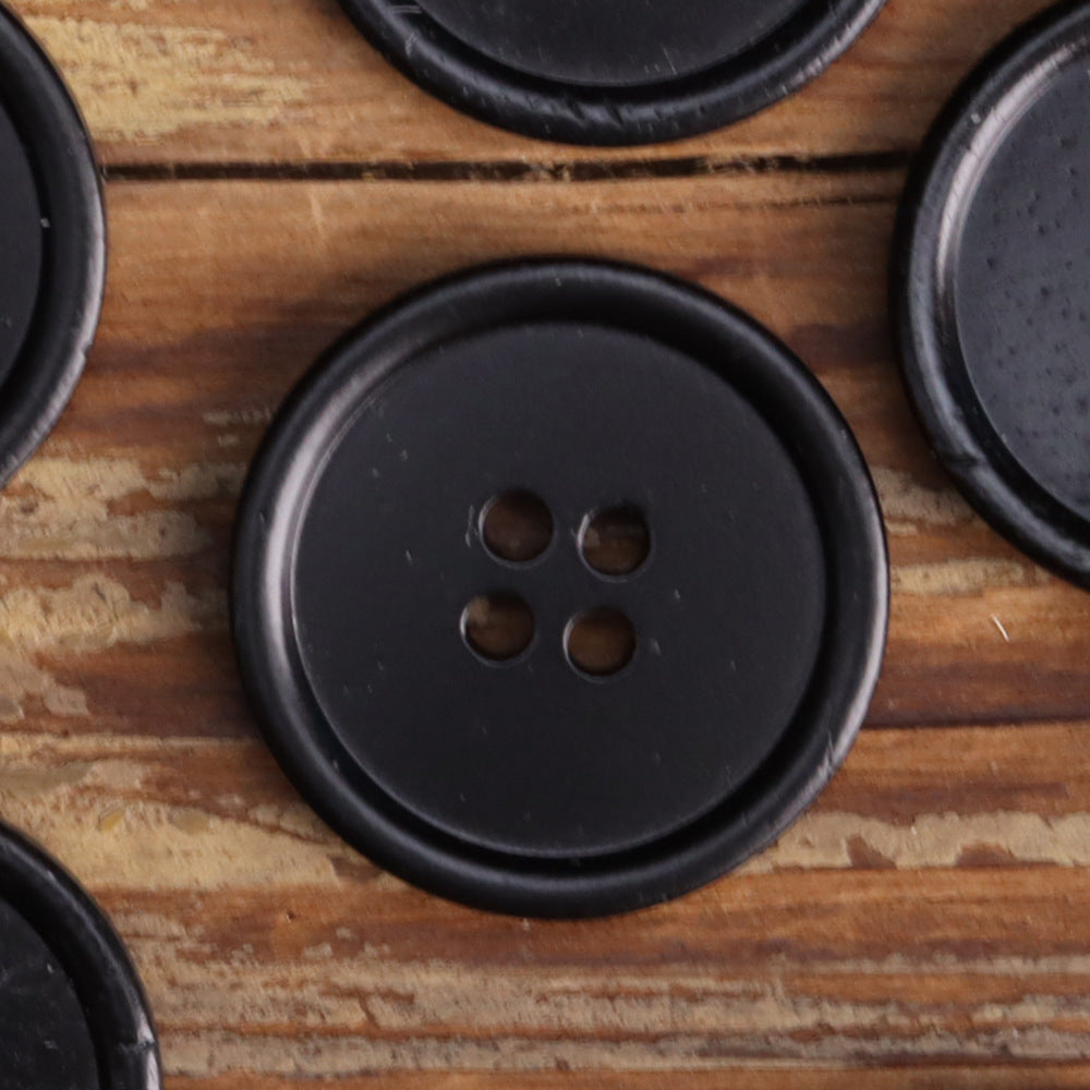 Ploché tenkostěnné čtyřdírkové černé knoflíky z hovězí kosti 10 ks