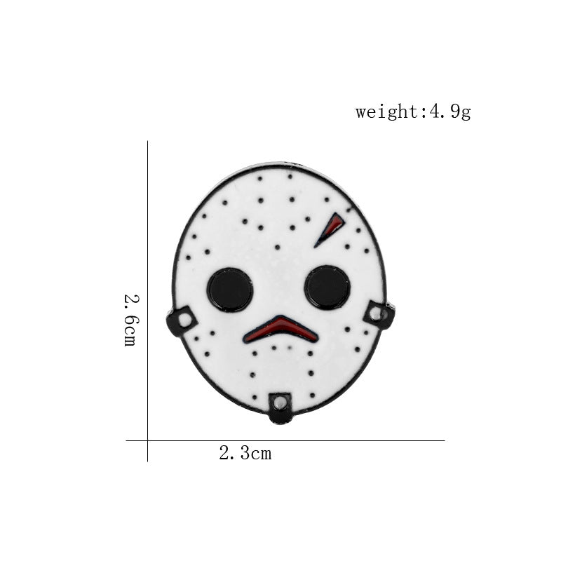 Přijměte hororovou klasiku s naším smaltovaným kovovým odznakem Pátek třináctého s maskou Jasona. Tento 1 palec vysoký smaltovaný odznak je nezbytností pro fanoušky série, představující ikonickou hokejovou masku Jasona Voorheese. Vyrobený ze smaltu a kovu, je to detailní sběratelský kousek, který přidává nádech kultovního filmového kouzla k jakémukoli oblečení nebo sbírce. Ideální na bundy, tašky nebo jako dárek pro hororové nadšence, tento odznak je stylovou poctou hrůze z Camp Crystal Lake.