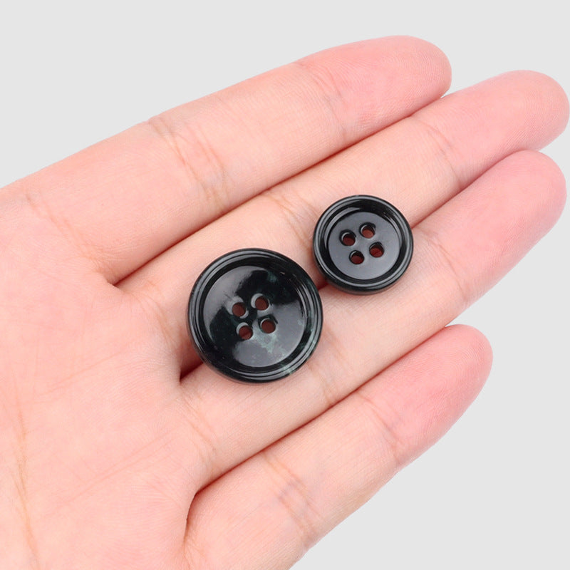 Lesklé černé kulaté přírodní nefritové čtyřdírkové knoflíky pro oblekové sako kalhoty 4ks