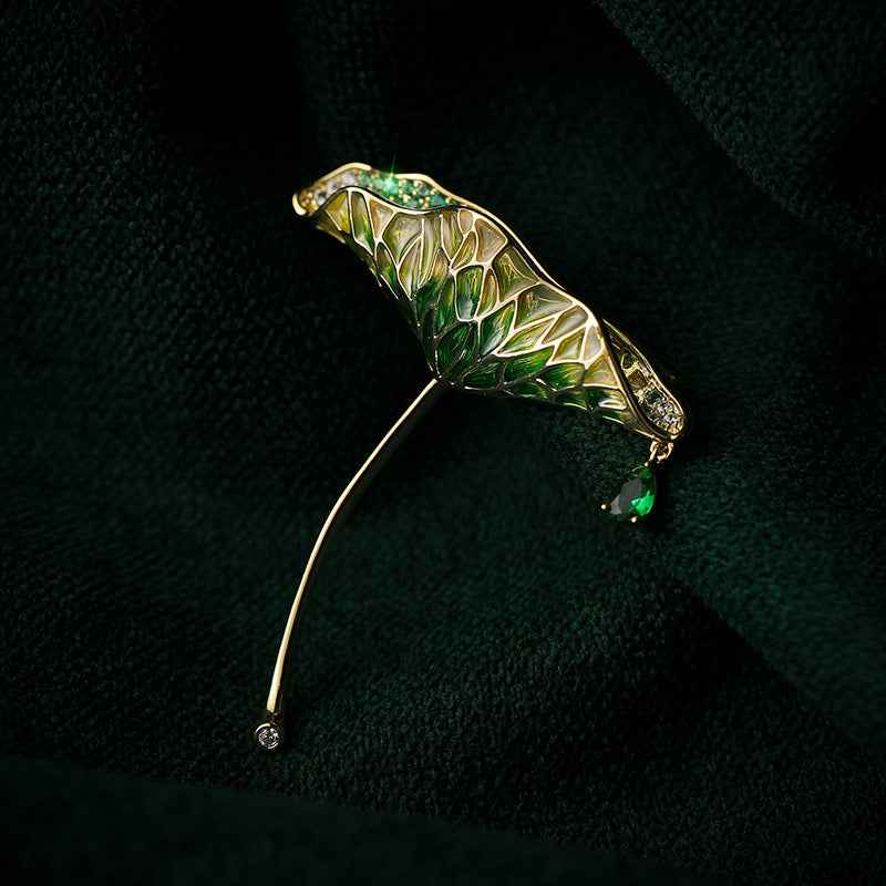 Přidejte svému outfitu nádech elegance inspirované přírodou s naší broží Gold Green Enamel Lotus Leaf Waterdrop Zircon Brooch Pin. Tento vynikající kousek představuje jemný motiv lotosového listu, vyrobený z bohatého zlatého a zeleného smaltu a zdobený třpytivým zirkonovým kapkovitým kamenem pro luxusní vzhled. Perfektní pro doplnění blůz, bund, šátků nebo klobouků, tato brož je všestranným doplňkem do každého šatníku. Její bezpečná zadní spona zajišťuje snadné a pohodlné nošení, což ji činí ideální jak pro běžné, tak formální příležitosti. Ať už se oblékáte na speciální událost, nebo přidáváte elegantní akcent ke svému každodennímu vzhledu, tato brož je nadčasovým a poutavým doplňkem.
