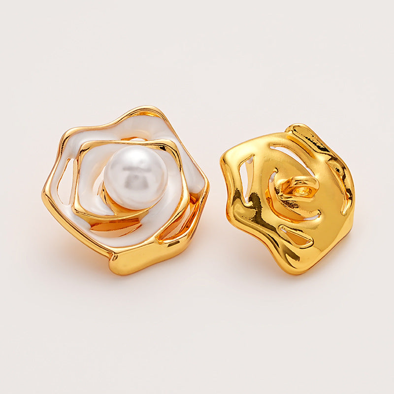 Zlatý dutý smaltovaný nepravidelný kamélie perlový kovový knoflík 5 ks