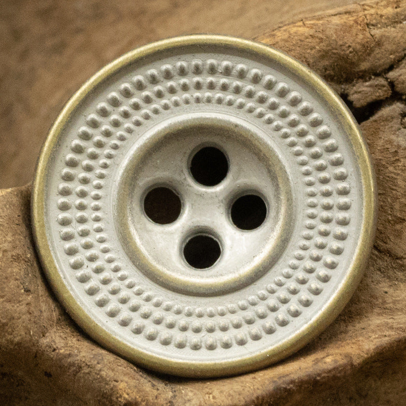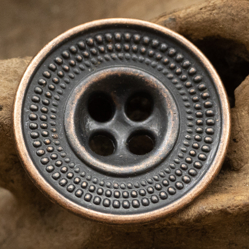 Přidejte nádech vintage kouzla své retro módní džínové bundě s tímto širokým okrajem, zrnitým, víčkovým, starožitně cínově zbarveným kovovým knoflíkem.