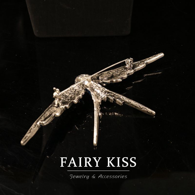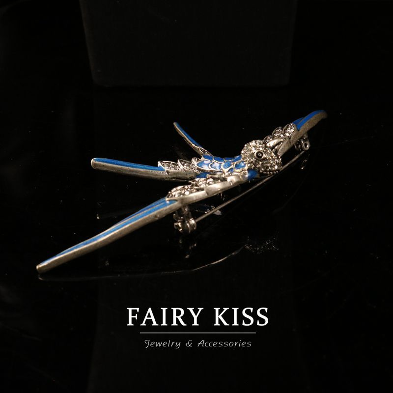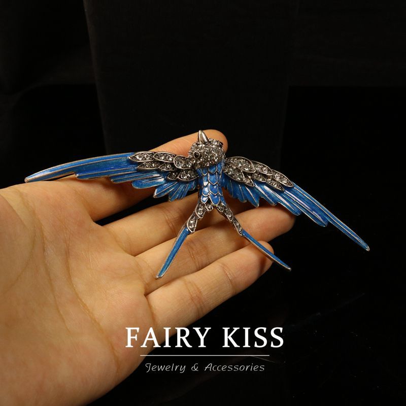 Ručně vyráběná smaltovaná modrá vlaštovka kovová brož