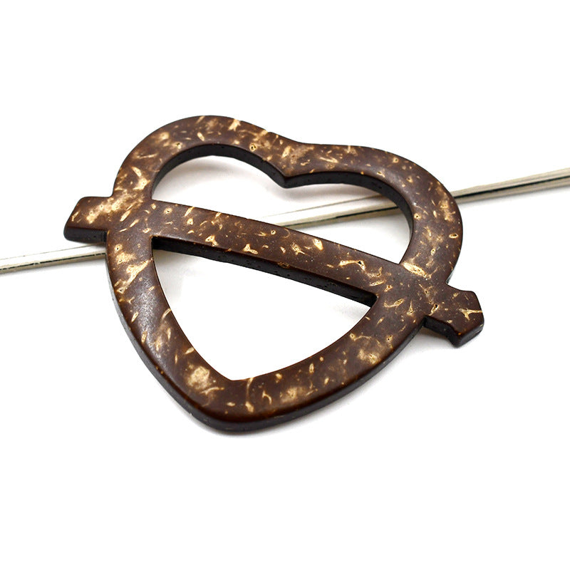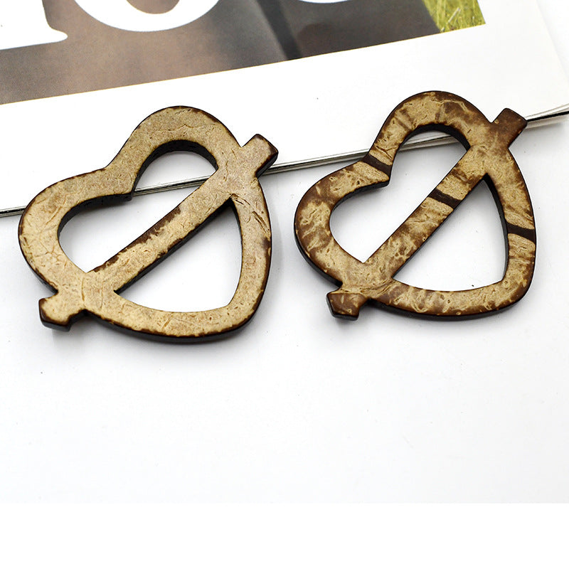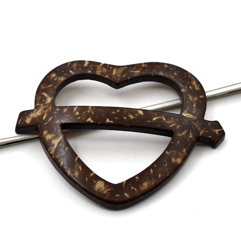 Dekorační knoflíky z přírodní kokosové skořápky srdcem propíchnutá šipka 10 kusů