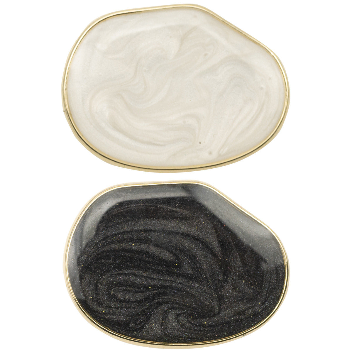 Nepravidelné oválné perlově bílé černé skleněné kovové knoflíky 10 ks