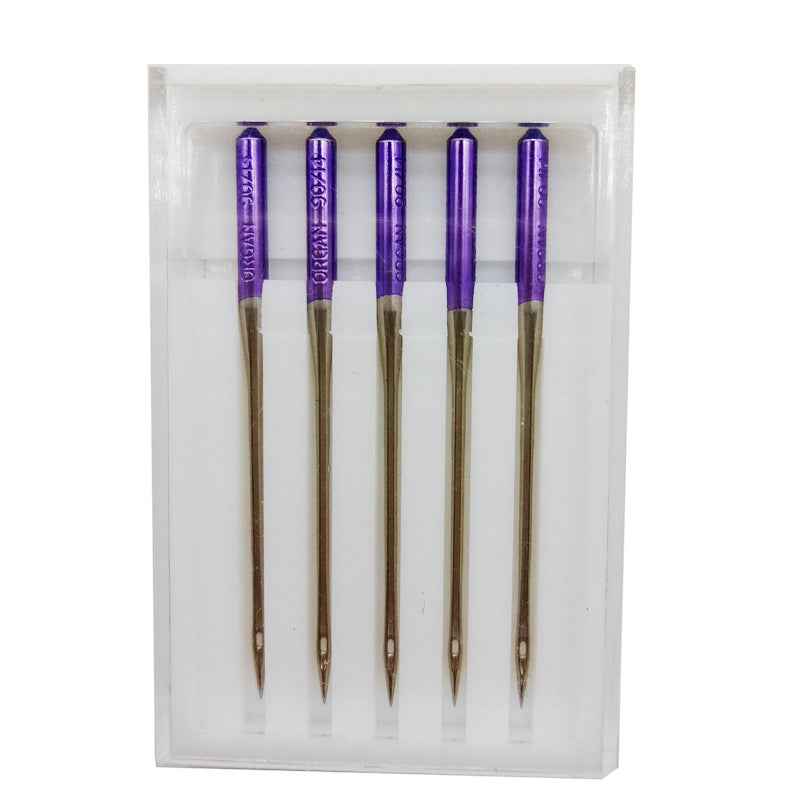 Jehly na šicí stroje Janome s fialovým hrotem, velikost 90/14, skvělé pro těžké látky a šití přes lem - 5 jehel v balení