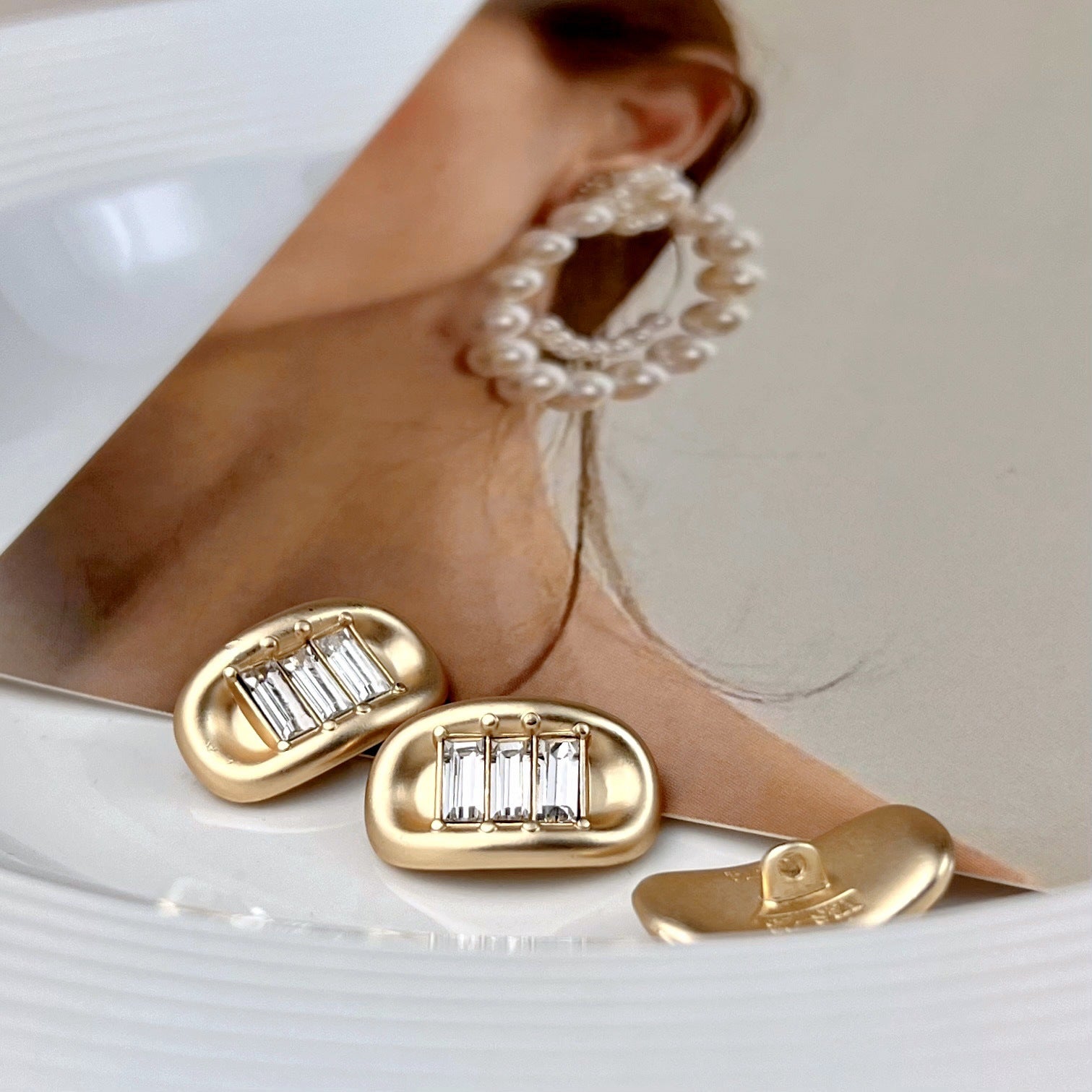 Světle zlatý jasně stříbrný ingot knoflík s kamínky kovový nožičkový 12 ks