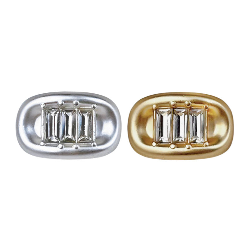 Přidejte do svých návrhů nádech luxusu a sofistikovanosti s naším 15/23mm knoflíkem s kovovým očkem, ve tvaru ingotu, v barvách světle zlaté a lesklé stříbrné s kamínky. Tento elegantní knoflík má jedinečný tvar ingotu, který kombinuje světle zlaté a lesklé stříbrné provedení pro výrazný kontrast. Ozdobený třpytivými kamínky dodává každému projektu okouzlující vzhled. Vyrobený z vysoce kvalitního kovu, je odolný a ideální pro vylepšení oděvů, doplňků nebo DIY projektů. Zadní část s očkem zajišťuje snadné a pevné připevnění, což ho činí vhodným jak pro začátečníky, tak pro zkušené tvůrce. Ať už navrhujete elegantní blůzu, stylovou tašku nebo jedinečný dekorativní prvek do domácnosti, tento knoflík je univerzálním a poutavým doplňkem vaší sbírky.