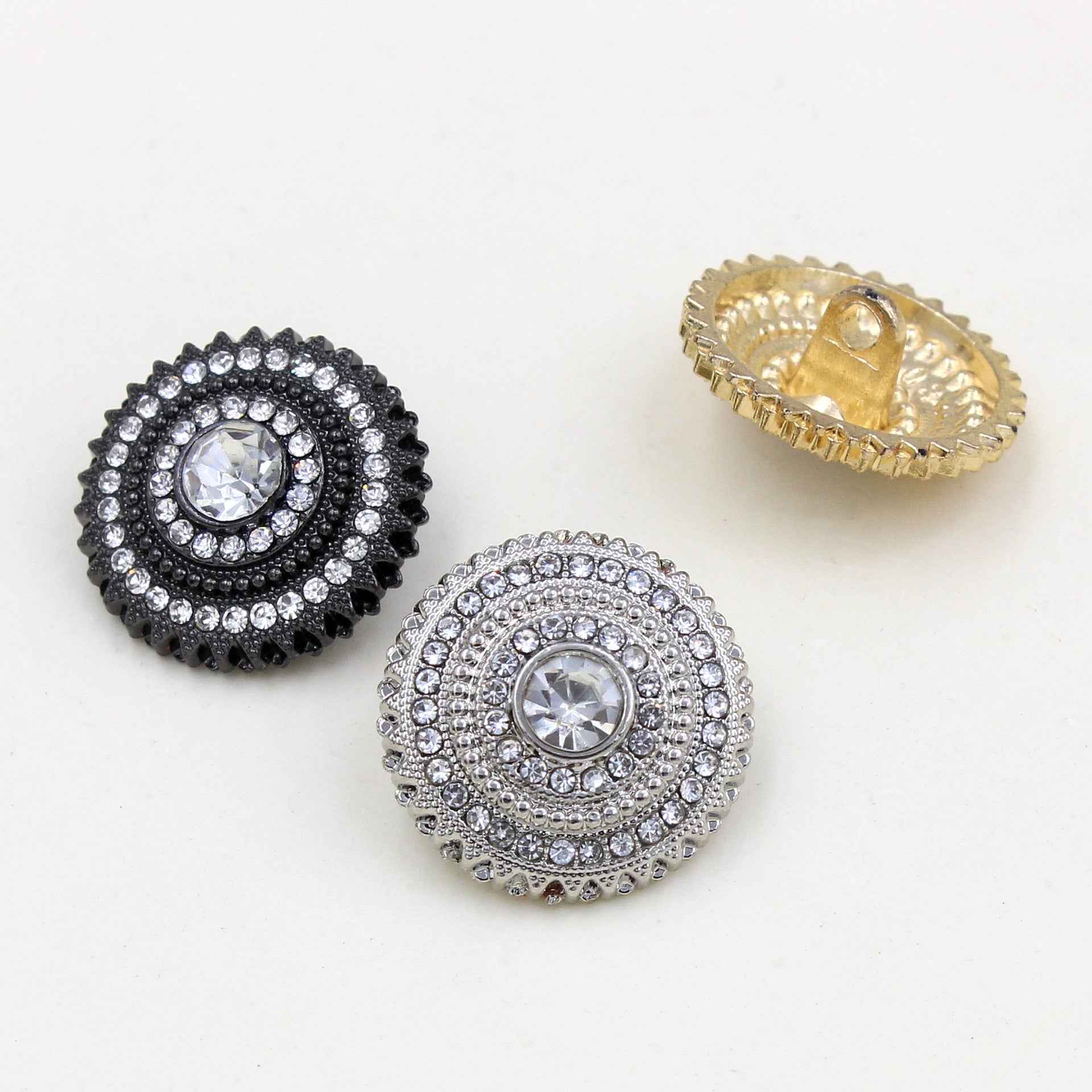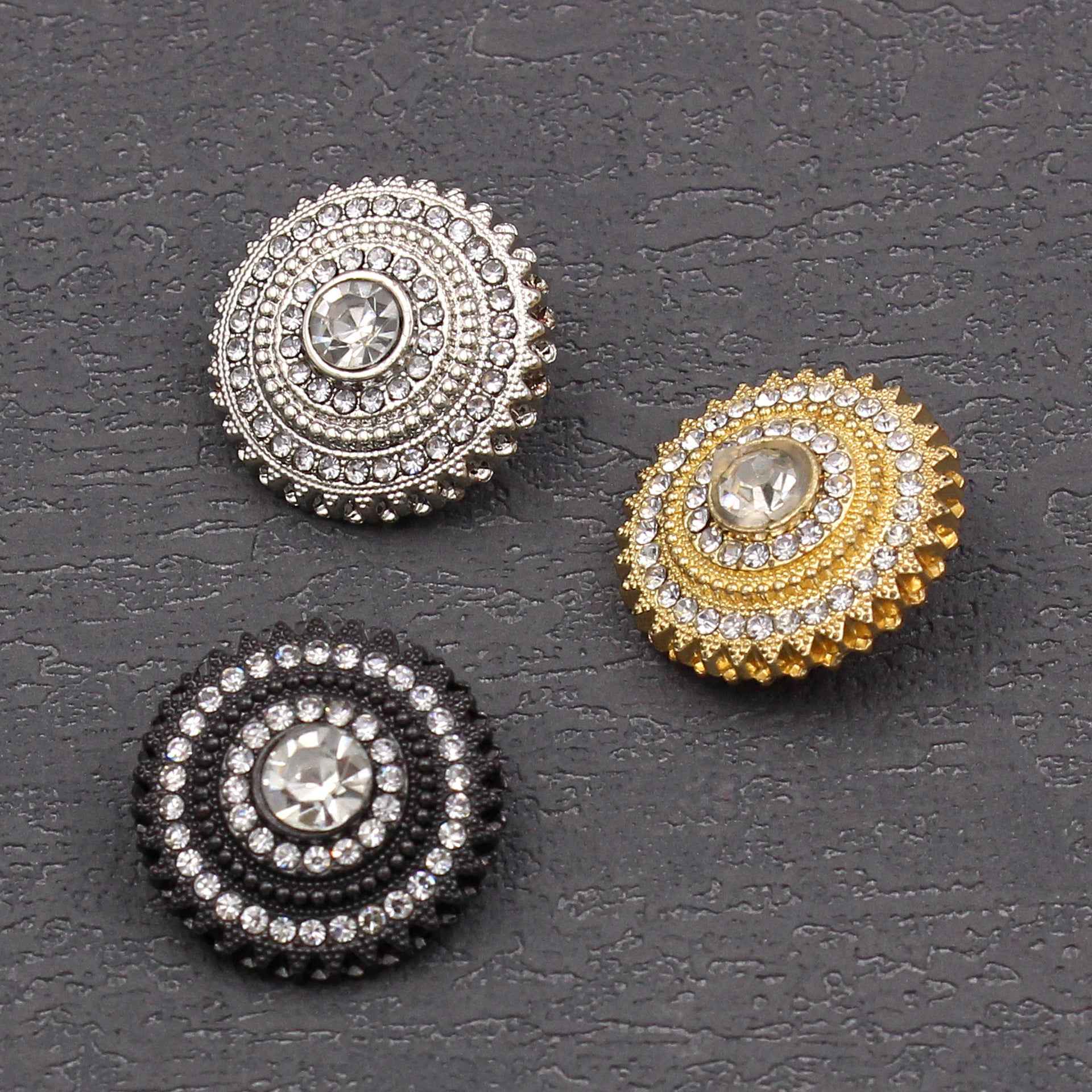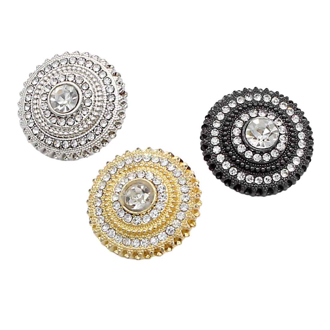 Luxusní kulaté kovové knoflíky SHANK s kamínky 48 kusů (3 barvy)