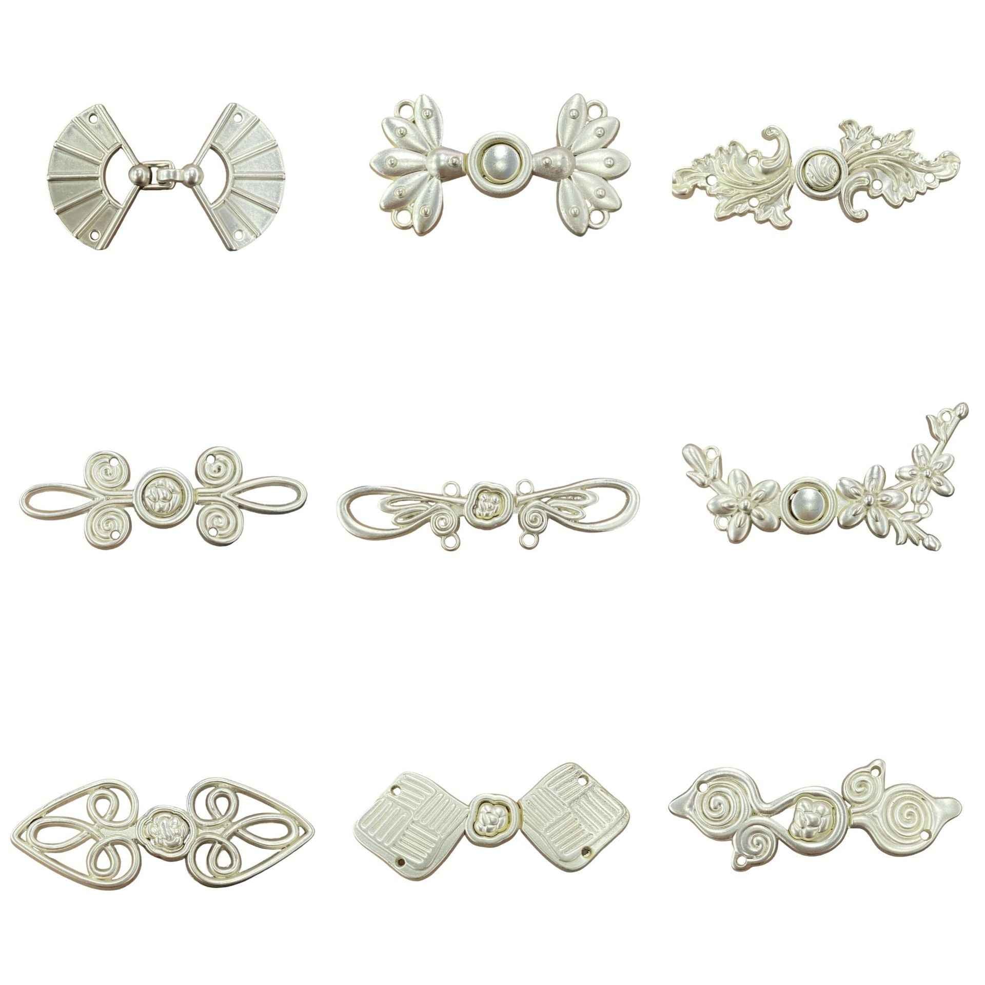 Tlačítka z bílého kovu ve tvaru žáby pro čínský Hanfu Tang oblek Qipao 6 ks