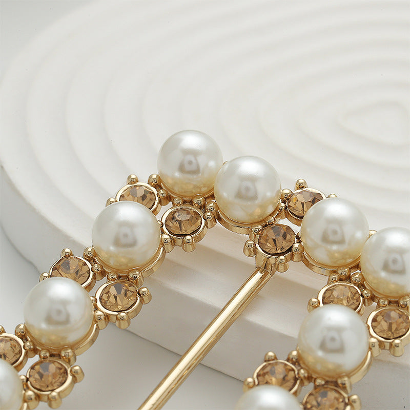 Perlová a diamanty zdobená obdélníková kovová spona - dekorativní nastavitelná spona na opasek