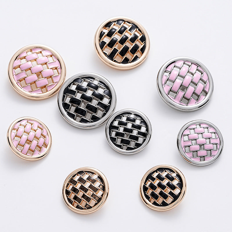 Růžový a černý tkaný mřížkový kovový knoflík na oblečení s olejovým povrchem 5 ks