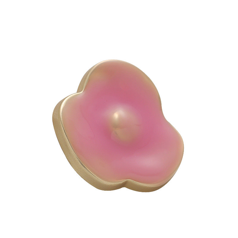 Ať už chcete do svého šatníku přidat nádech barvy, nebo vytvořit jedinečný kousek, tento růžovo-zelený nepravidelný kovový knoflík ve tvaru květu je perfektní volbou.