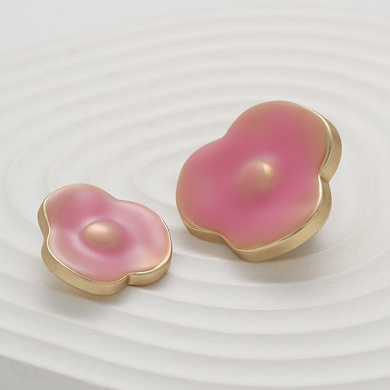 Kovový knoflík na šití s nepravidelným květem v růžové a zelené barvě inspirované dopaminem, 6 ks