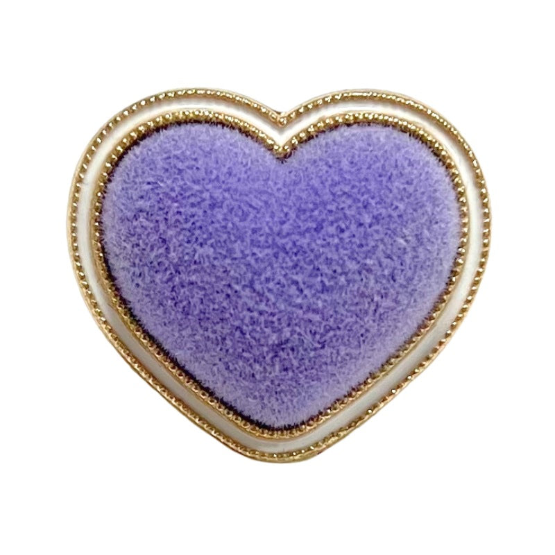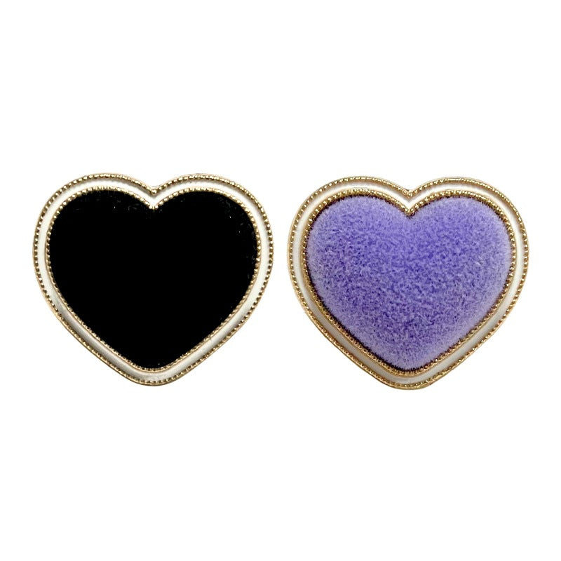 Fialové a černé plstěné kovové knoflíky ve tvaru srdce s bílým okrajem 20 ks