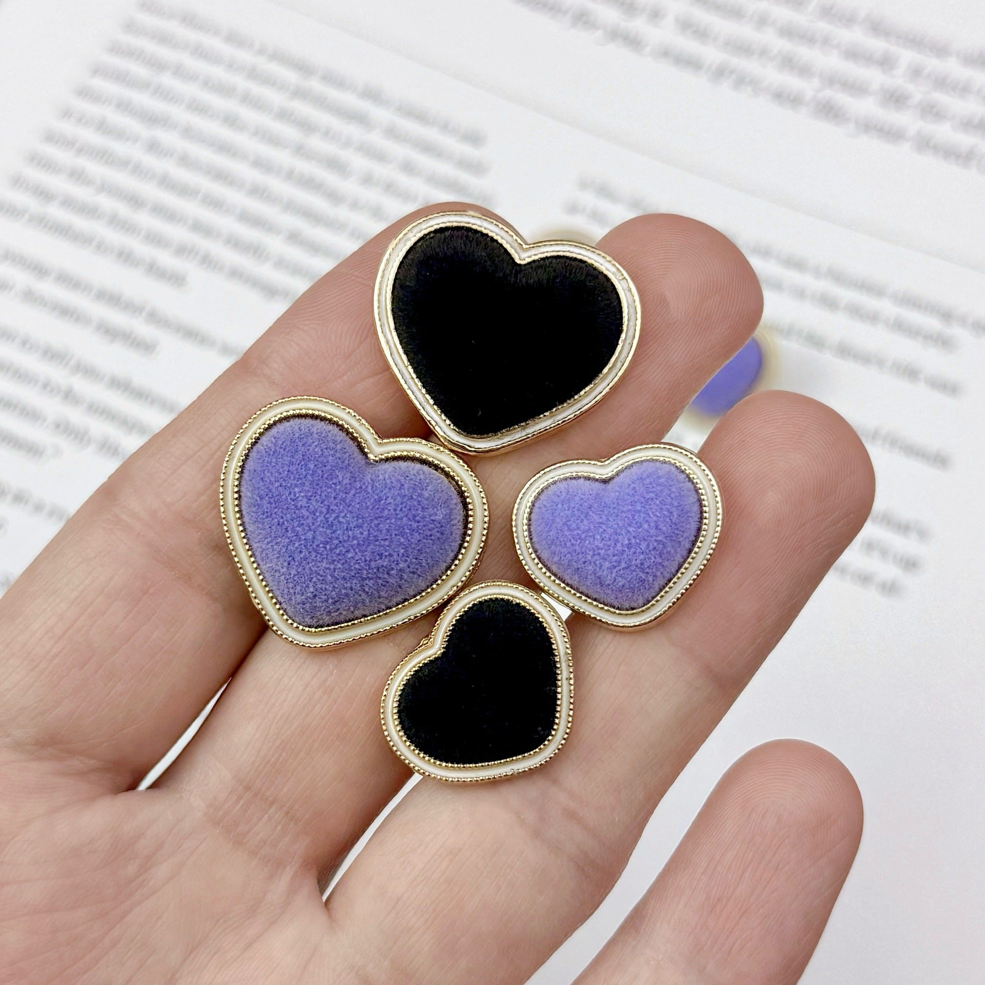 Přidejte svým návrhům romantický nádech s našimi 20/25MM fialovými a černými kovovými knoflíky s bílým okrajem a sametovým povrchem. Tyto knoflíky mají okouzlující tvar srdce s měkkou sametovou texturou ve fialové a černé barvě, doplněné ostrým bílým okrajem, ideální pro zdobení halenek, šatů a lehkých oděvů. Vyrobeny z vysoce kvalitního kovu, jsou odolné a dlouhotrvající, přičemž si zachovávají svůj stylový vzhled. K dispozici ve dvou univerzálních velikostech, tyto knoflíky jsou ideální pro módní návrháře, řemeslníky a nadšence DIY. Pozvedněte své výtvory s těmito elegantními, poutavými knoflíky ještě dnes!