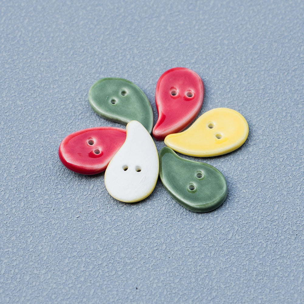 Červené Žluté Zelené Knoflíky ve tvaru uvozovek Ručně vyráběné DIY keramické 10 ks