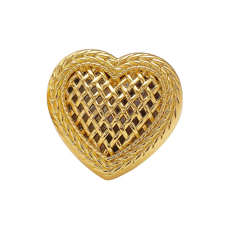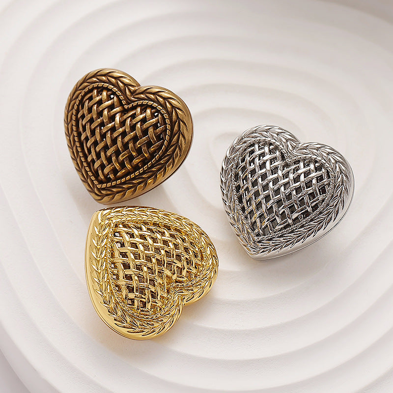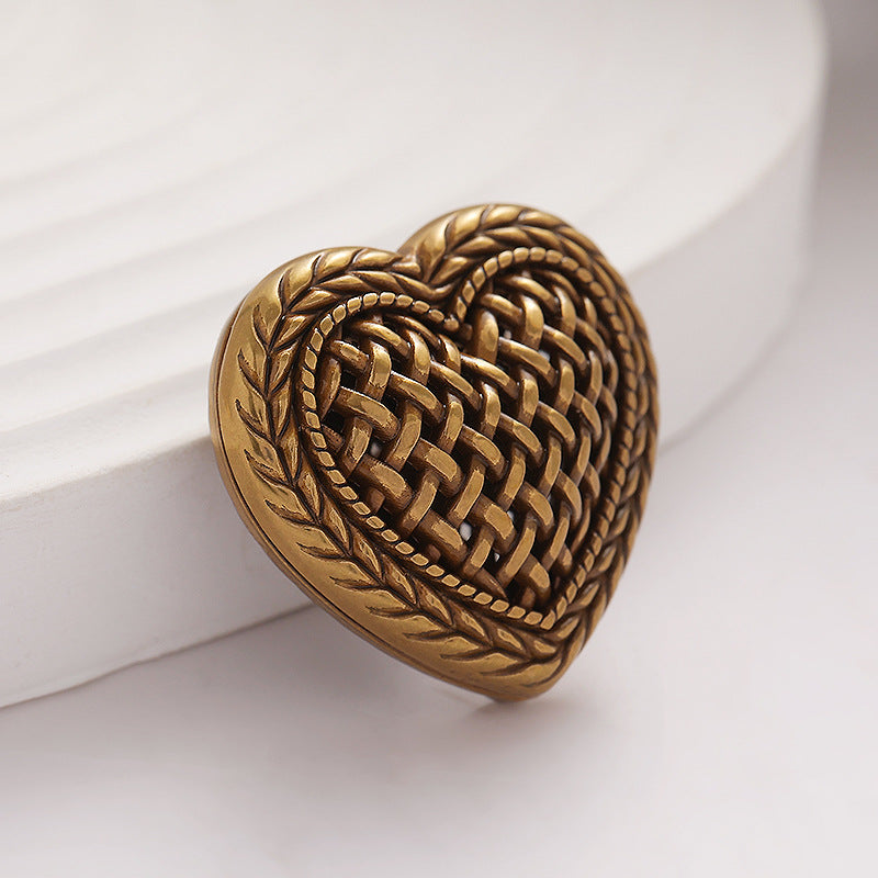 Tento retro tkaný dutý kovový dekorativní knoflík ve tvaru srdce je okouzlující a jedinečný doplněk. Složitý tkaný design mu dodává řemeslný nádech, zatímco dutý tvar srdce přidává nádech romantiky a elegance.