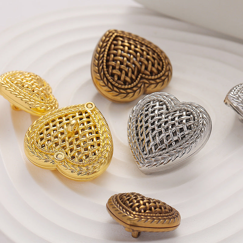 Retro tkaný dutý kovový dekorativní knoflík ve tvaru srdce 6 ks