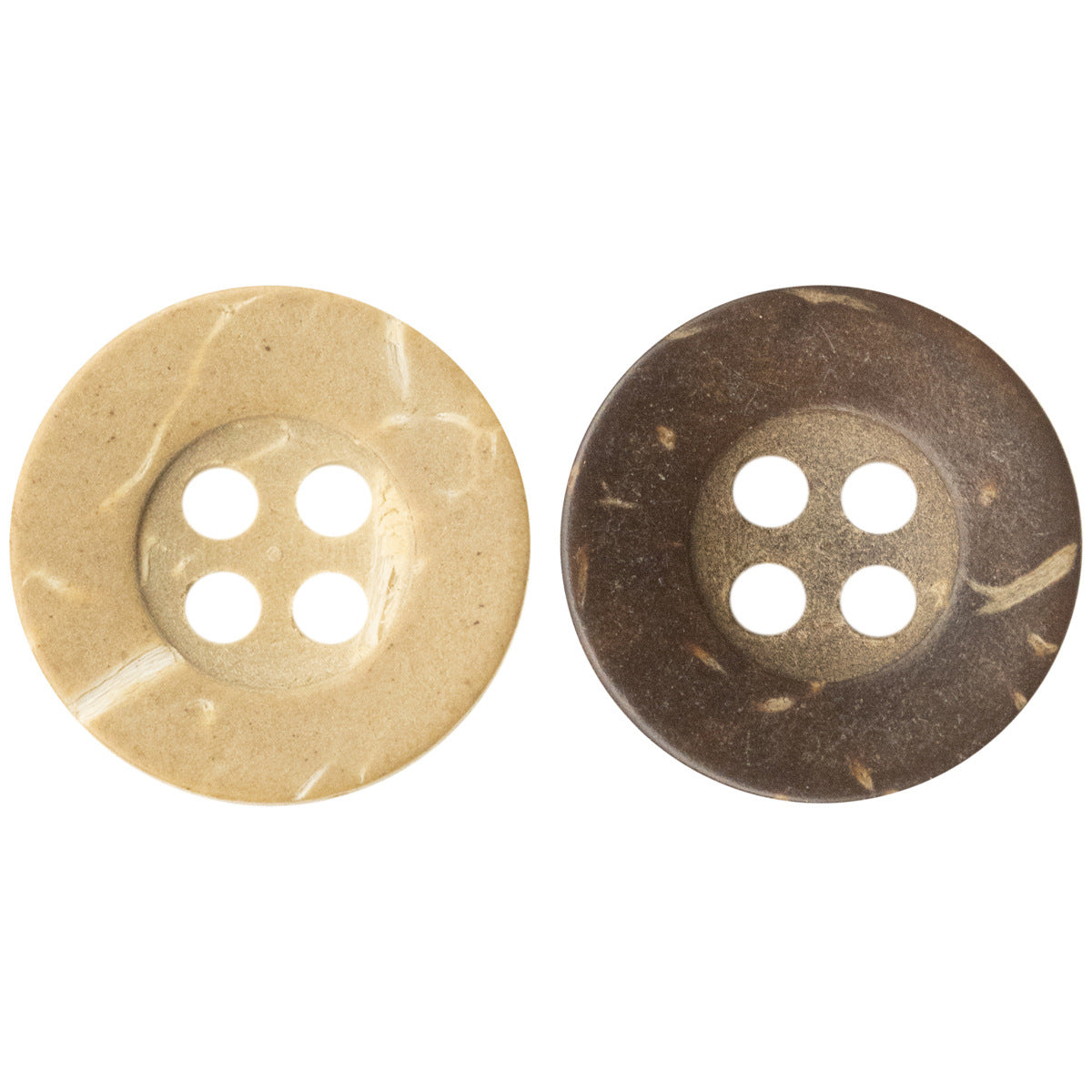 Tyto kulaté knoflíky z kokosové skořápky se širokým okrajem v khaki a kávové barvě jsou jedinečným a okouzlujícím doplňkem vašeho oblečení a DIY projektů.
