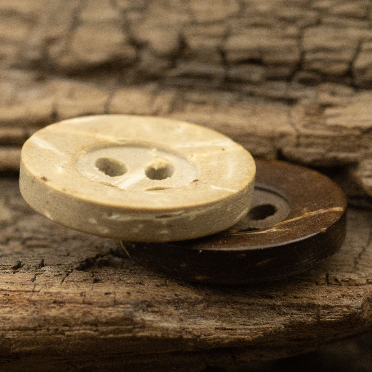 Kulovitý tvar a široký okraj dávají těmto knoflíkům klasický a nadčasový vzhled. Jsou ideální pro přidání doteku přírodní krásy k lněným košilím, dětským svetříkům nebo jakémukoli jinému oděvu.