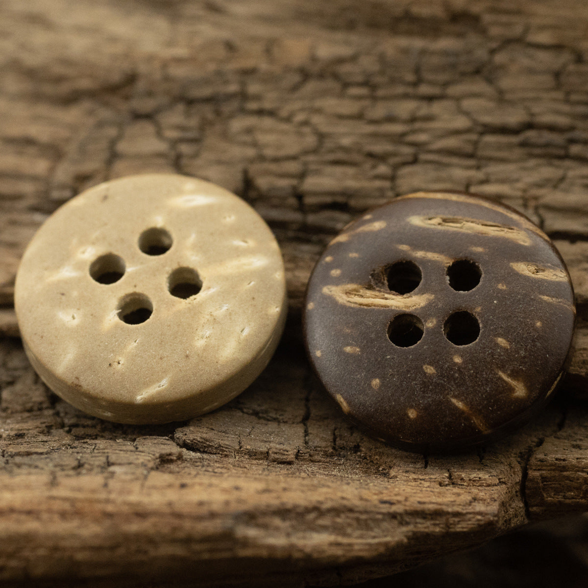 Vyrobené z přírodní kokosové skořápky, tyto knoflíky mají krásnou texturu a teplou, zemitou barevnou paletu. Světle žluté a kávové odstíny se spojují a vytvářejí harmonický a příjemný vzhled.