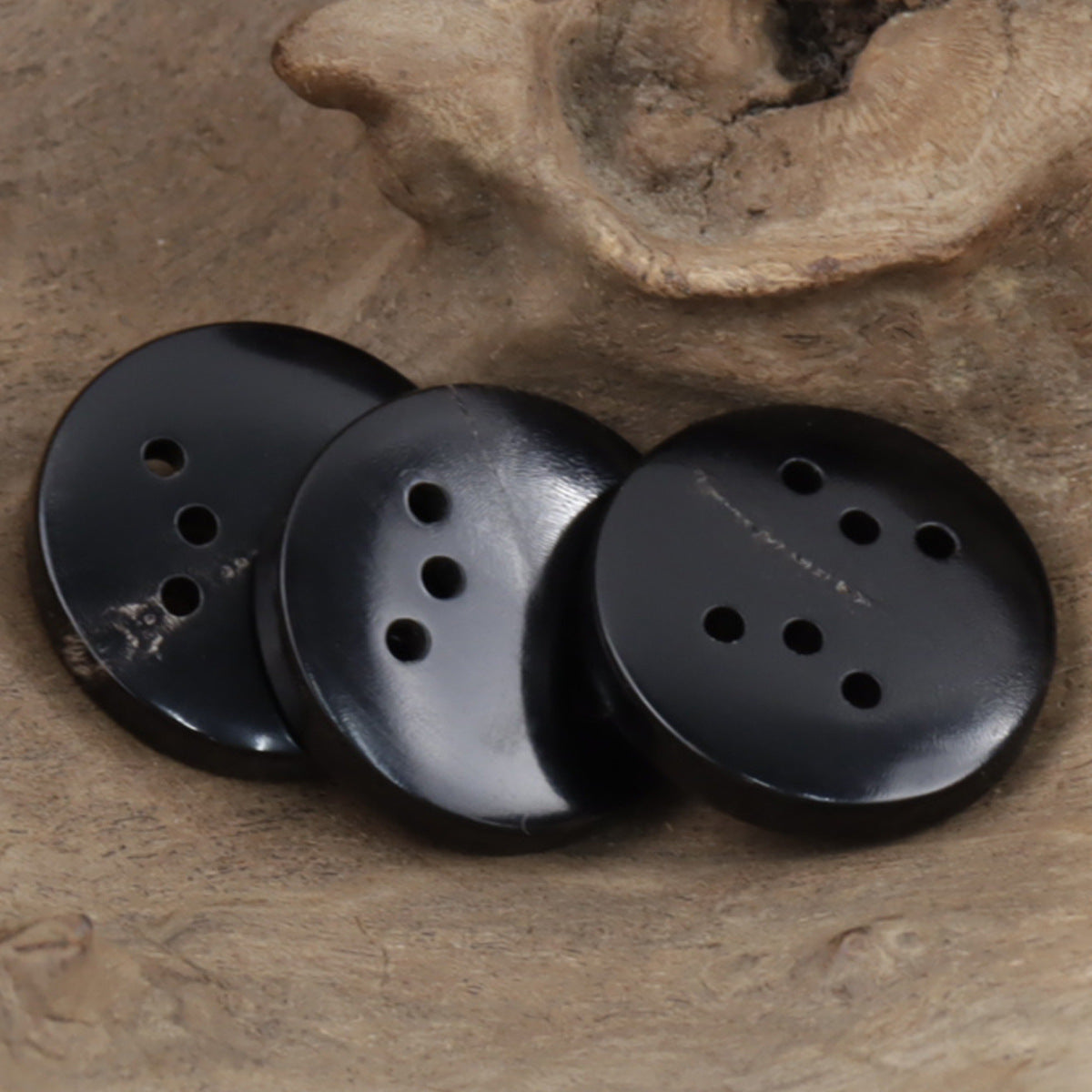 Kulaté šestidírkové knoflíky z přírodního černého rohoviny pro kožené bundy 6 ks