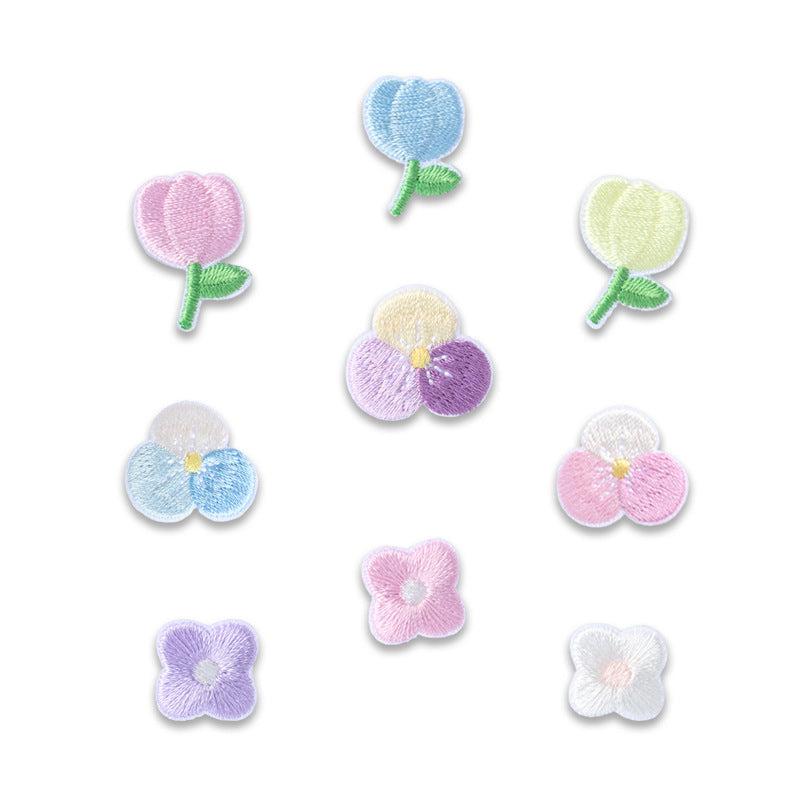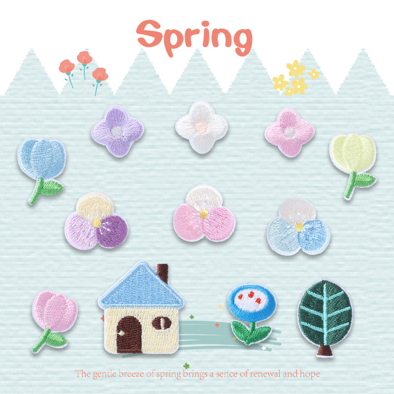 Samolepicí vyšívané nášivky jarních květin, balení 12 kusů