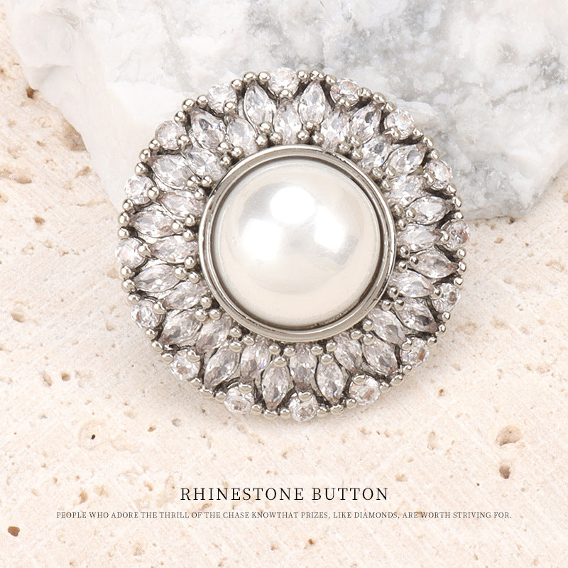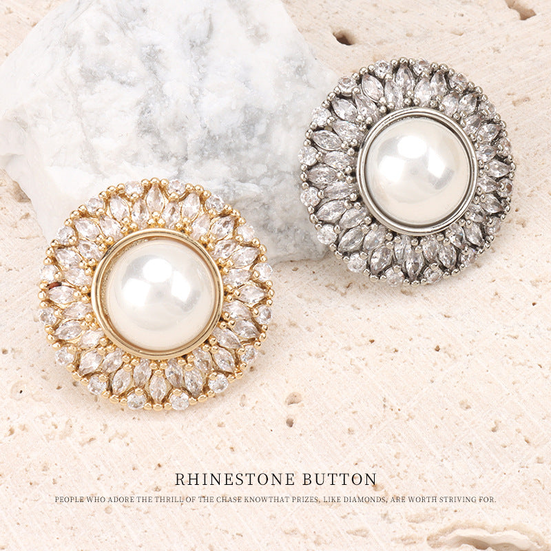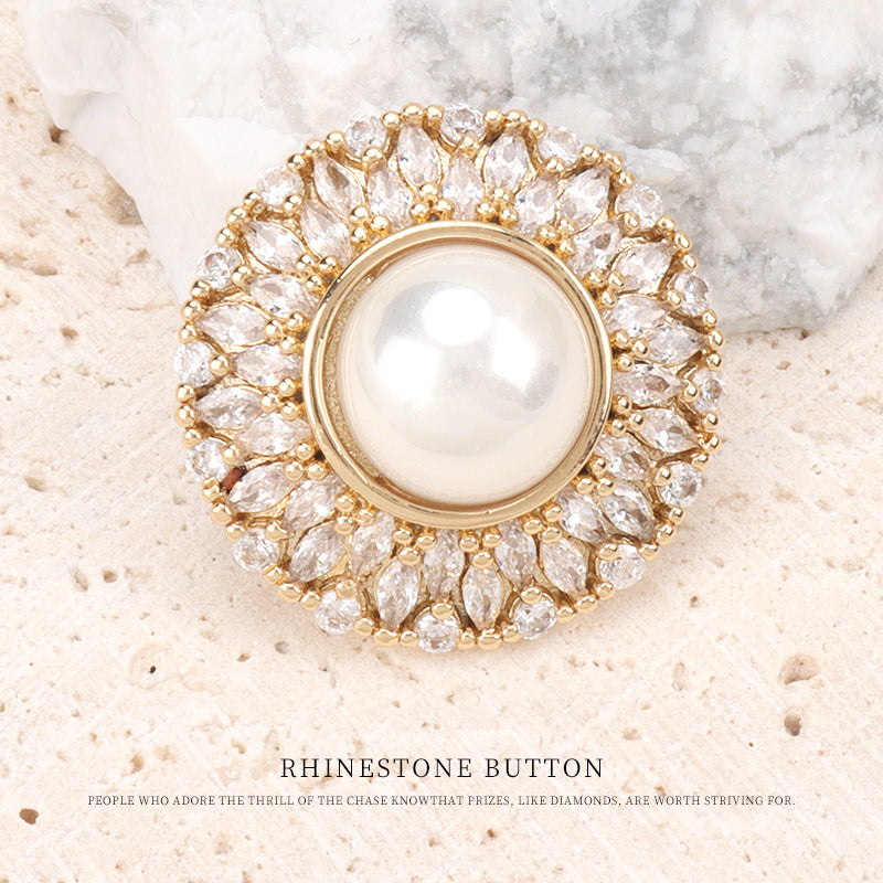 21MM knoflík ve tvaru slunečnice z vysoce kvalitní mědi se zirkonem a perlou - knoflíky pro kožichy, větrovky, saka a svetry 2ks